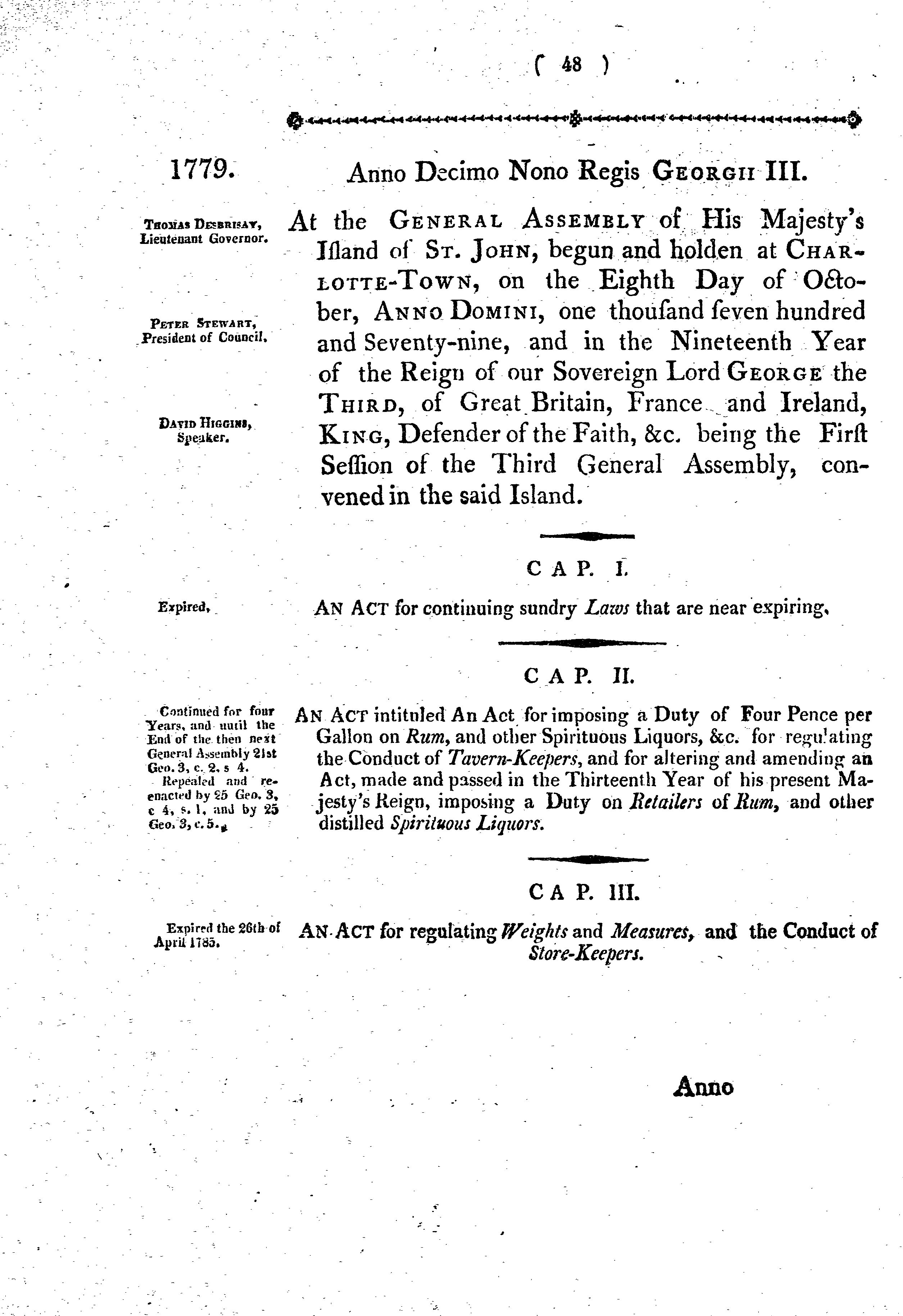Acts of the General Assembly of Prince Edward Island, comprising parts first and second, from the first establishment of the Legislature to the fifty-seventh year of the reign of King George the Third :