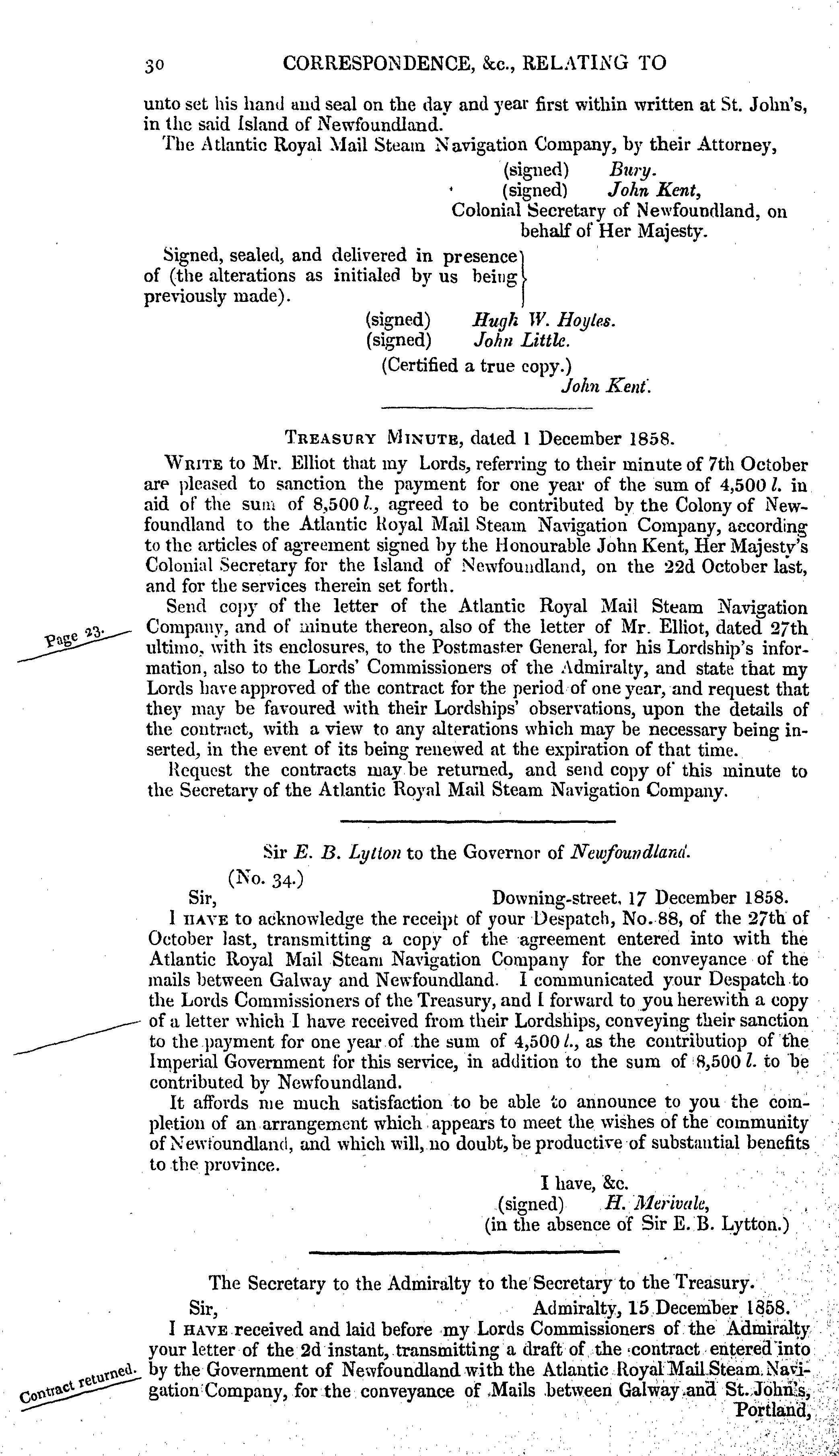 Cover title: Postal communication with North America, mail service (Galway and America) : copies of all applications, reports, papers, and communications made to the government relating to proposals for new contracts to establish steam communication ...