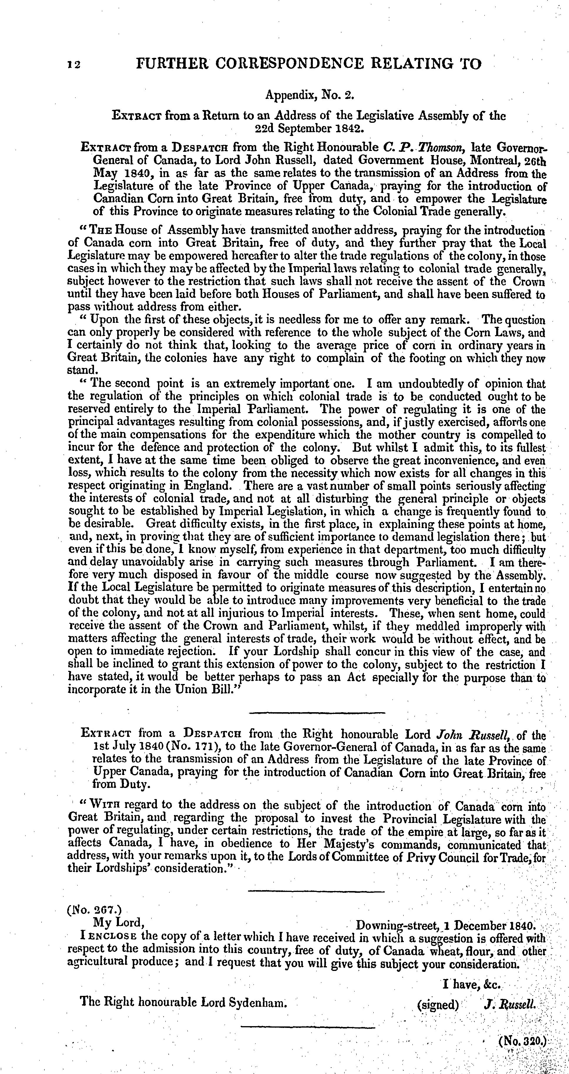 Cover title: Wheat (Canada): further return of copies or extracts of correspondence relating to the duties on wheat imported from the United States into Canada, or from Canada into the United Kingdom, since the 1st January 1842.