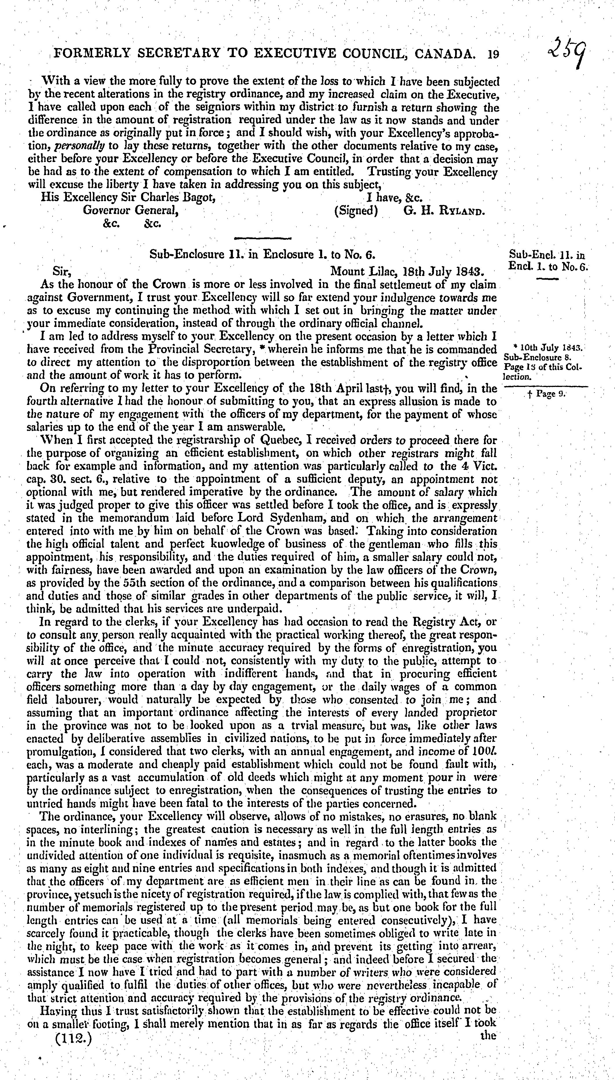 Papers relative to the claim of Mr. Ryland, formerly secretary to Executive Council, Canada