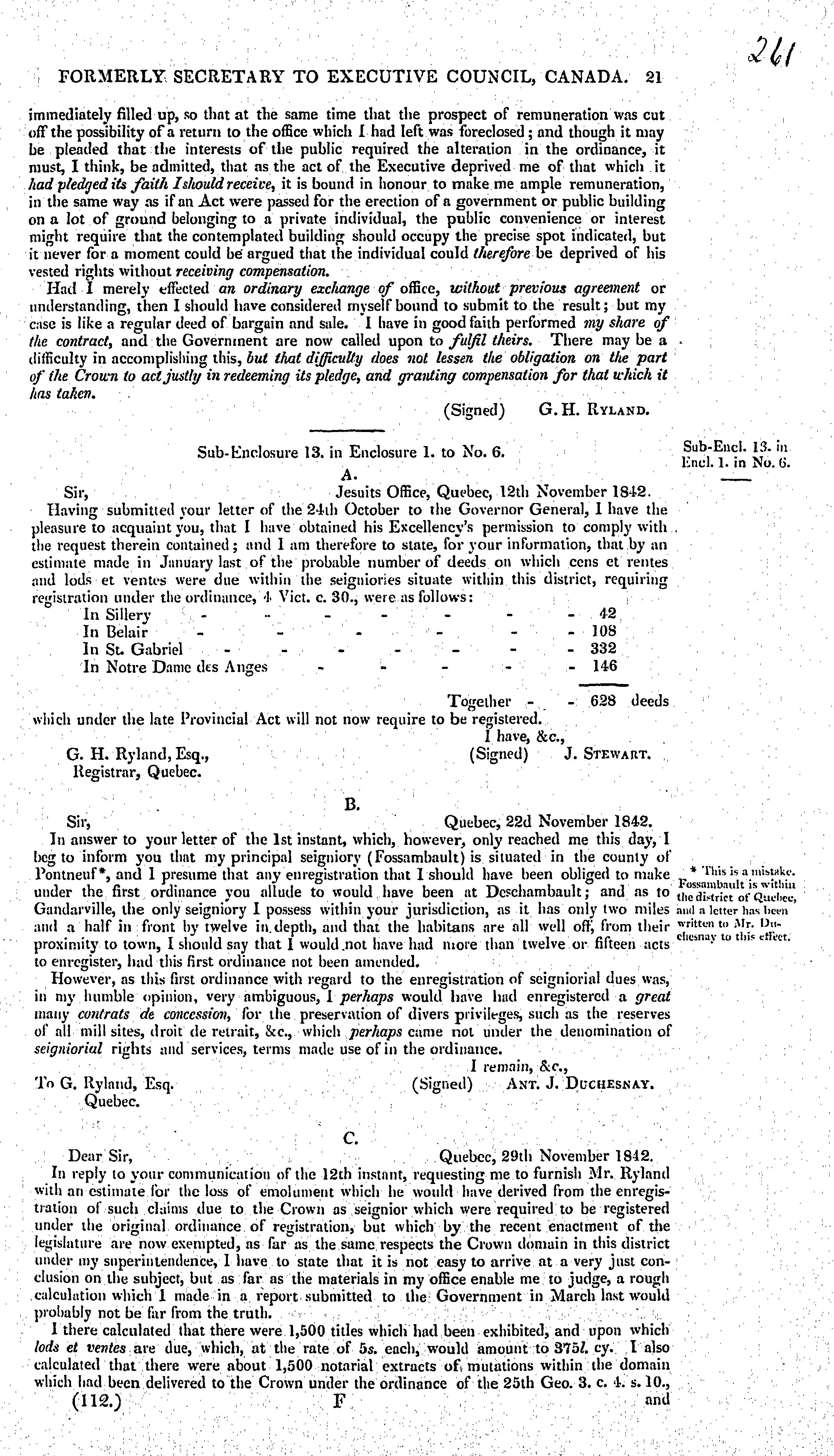 Papers relative to the claim of Mr. Ryland, formerly secretary to Executive Council, Canada