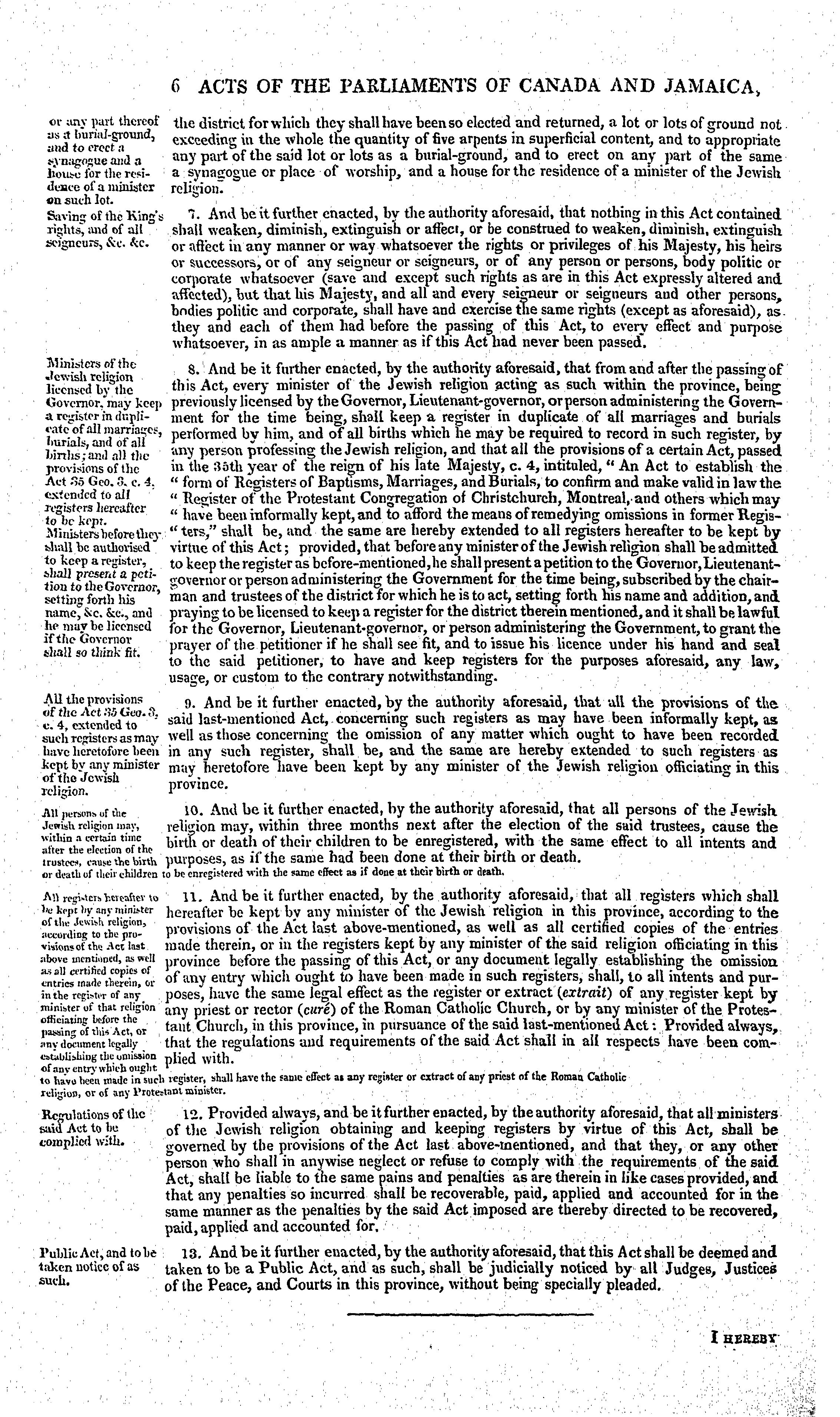 Acts of the parliaments of Canada and Jamaica for removal of civil disabilities of the Jews