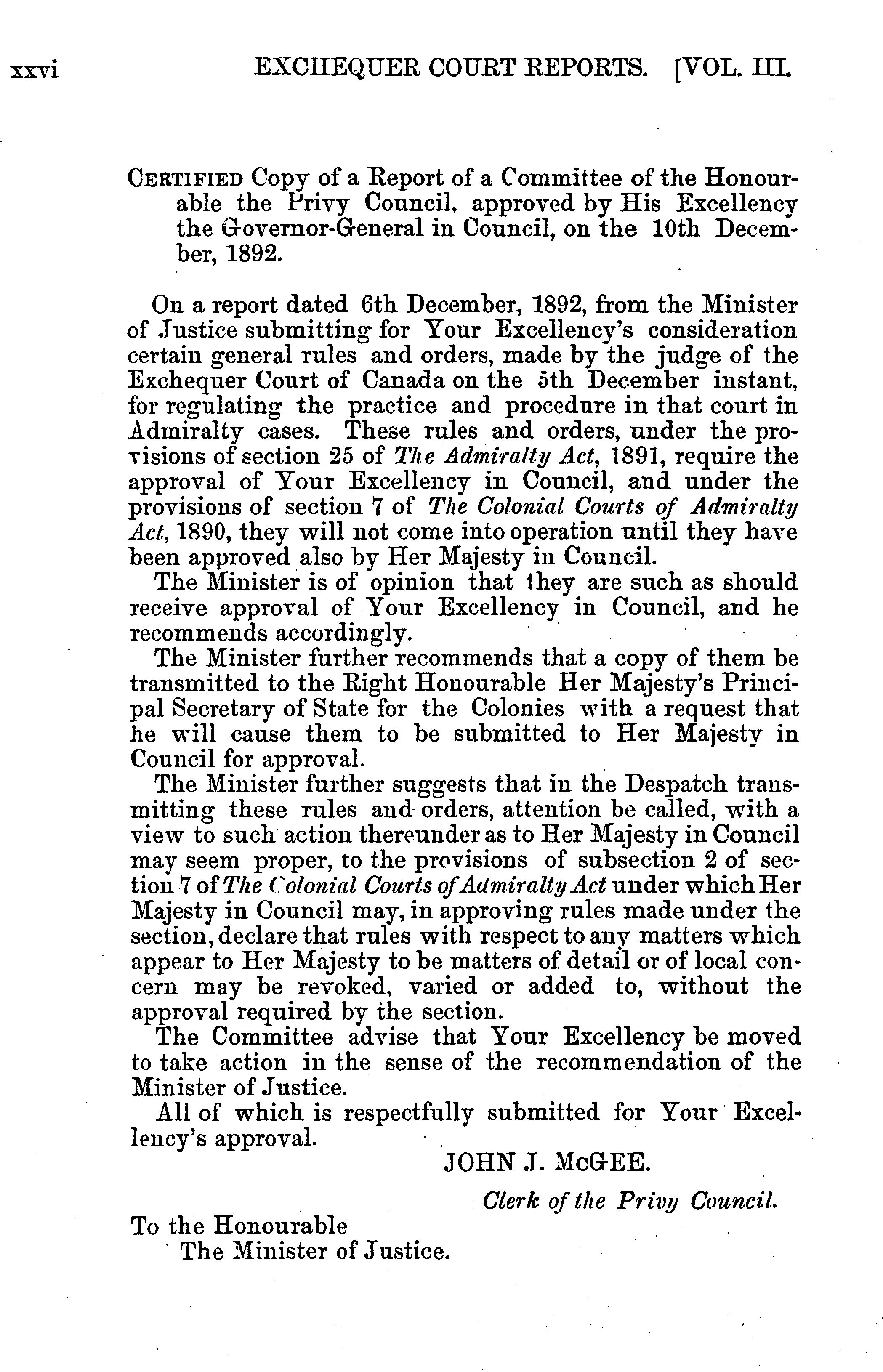 General rules and orders regulating the practice and procedure in Admiralty cases in the Exchequer Court of Canada : with forms and tables of fees ... brought into force ... on the 10th day of June, 1893. - Adresse bibliographique