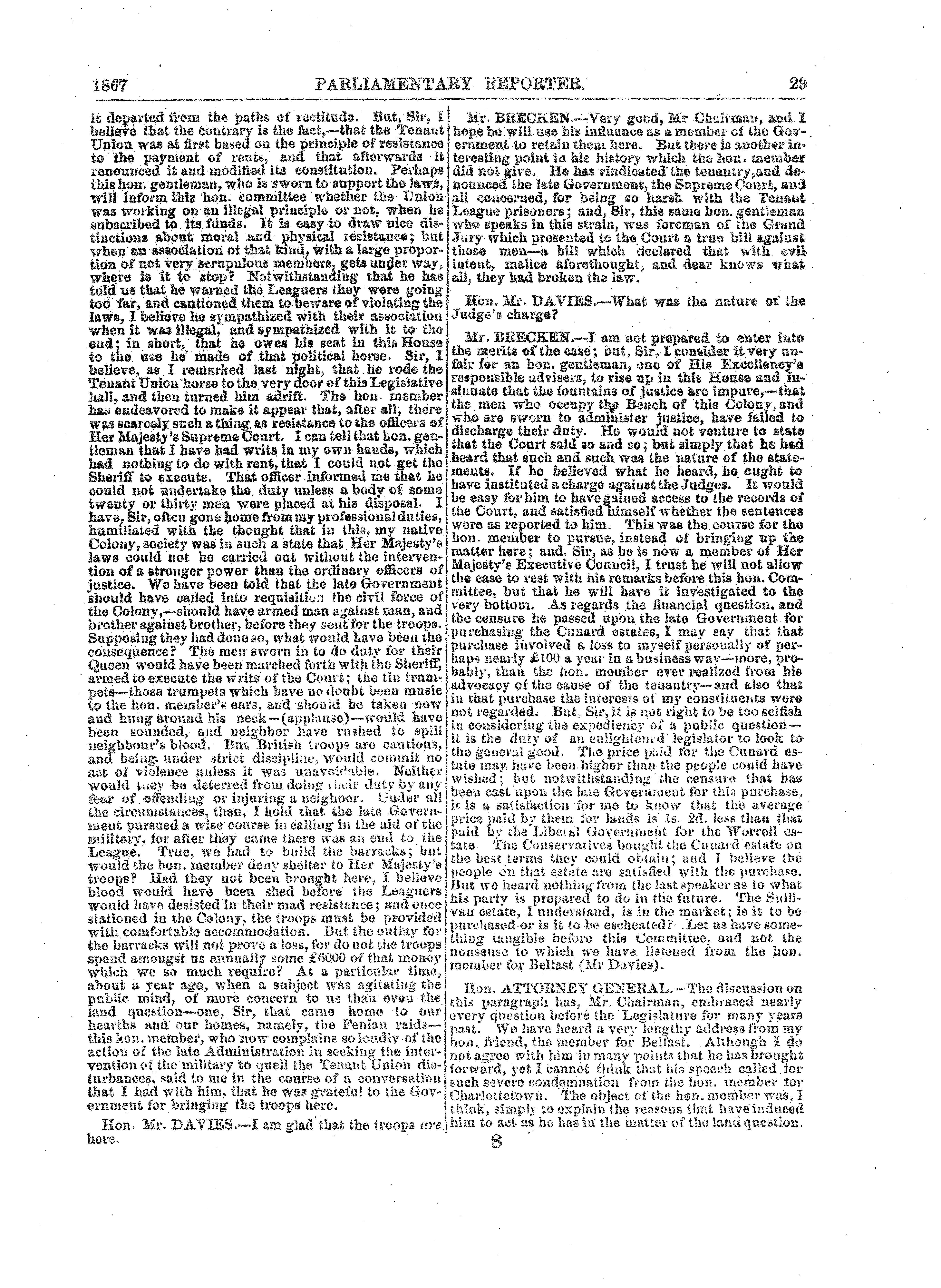 The Parliamentary reporter, or, Debates and proceedings of the House of Assembly of Prince Edward Island, for the year 1867, being the first Session of the twenty-third General Assembly : 1867