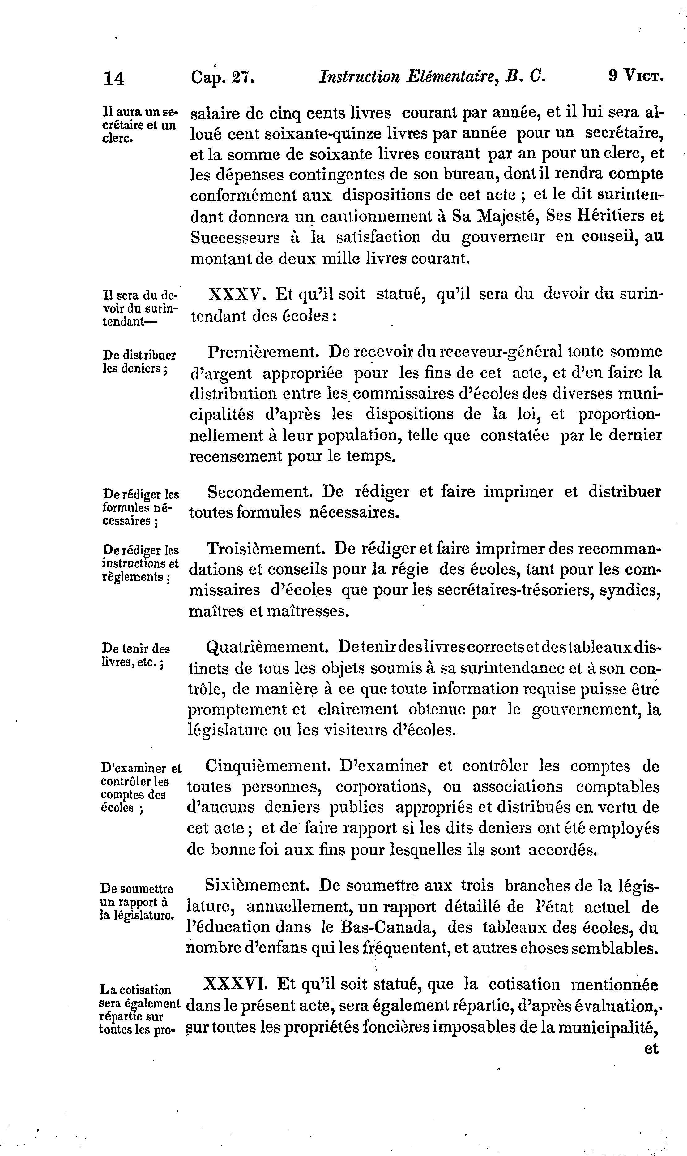 Actes pour promouvoir l'éducation dans le Bas-Canada.