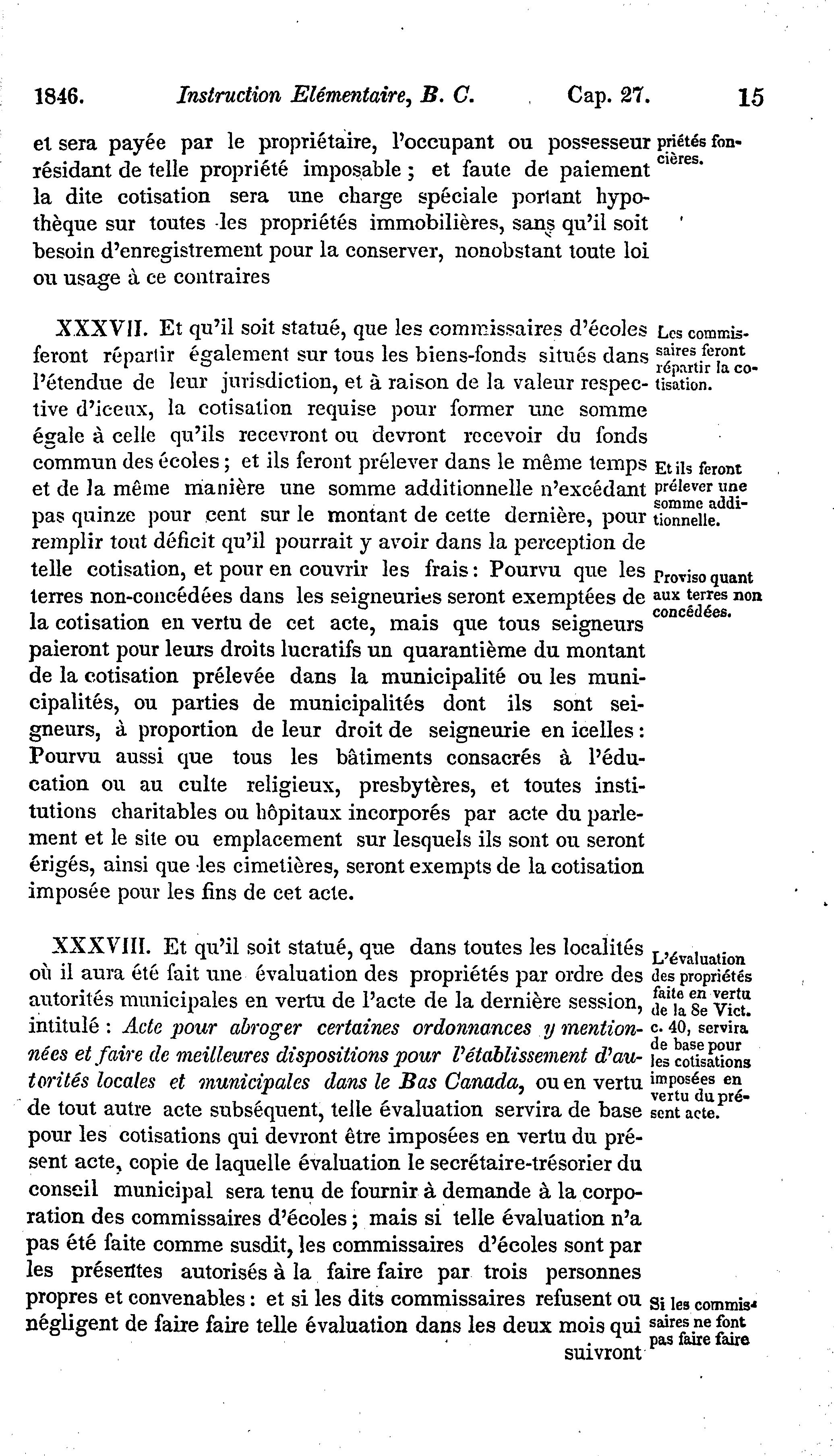 Actes pour promouvoir l'éducation dans le Bas-Canada.
