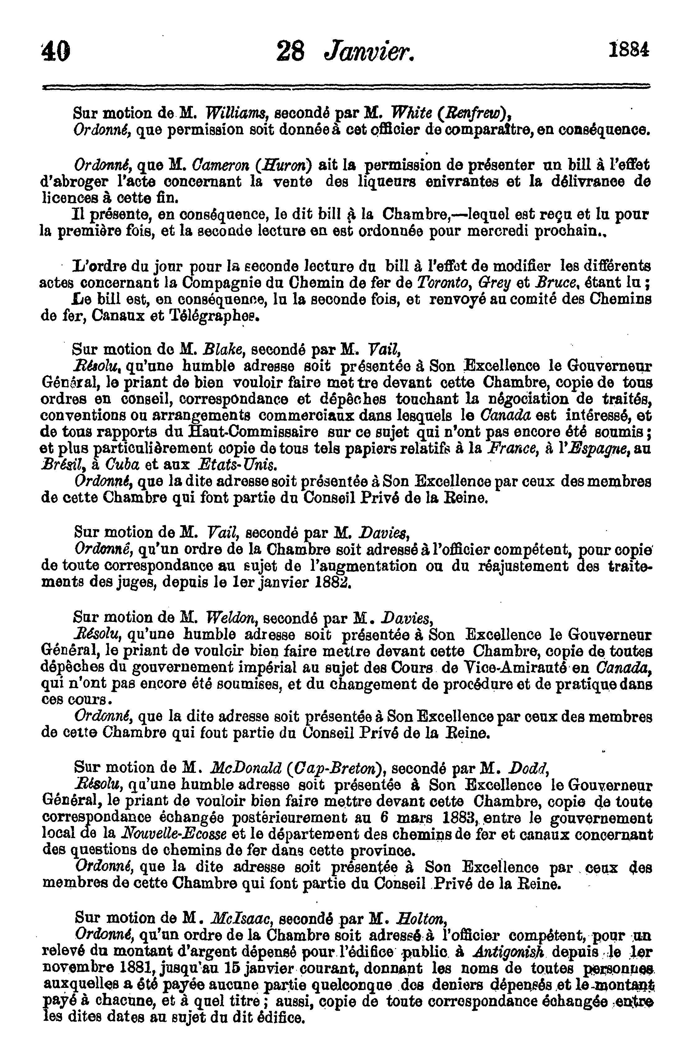 Journaux de la Chambre des communes du Canada du 17 janvier au 19 avril 1884, ces deux jours inclus, dans la quarante-septième année du règne de Sa Majesté la Reine Victoria : étant la 2e session du 5e parlement du Canada, session 1884 : 1884