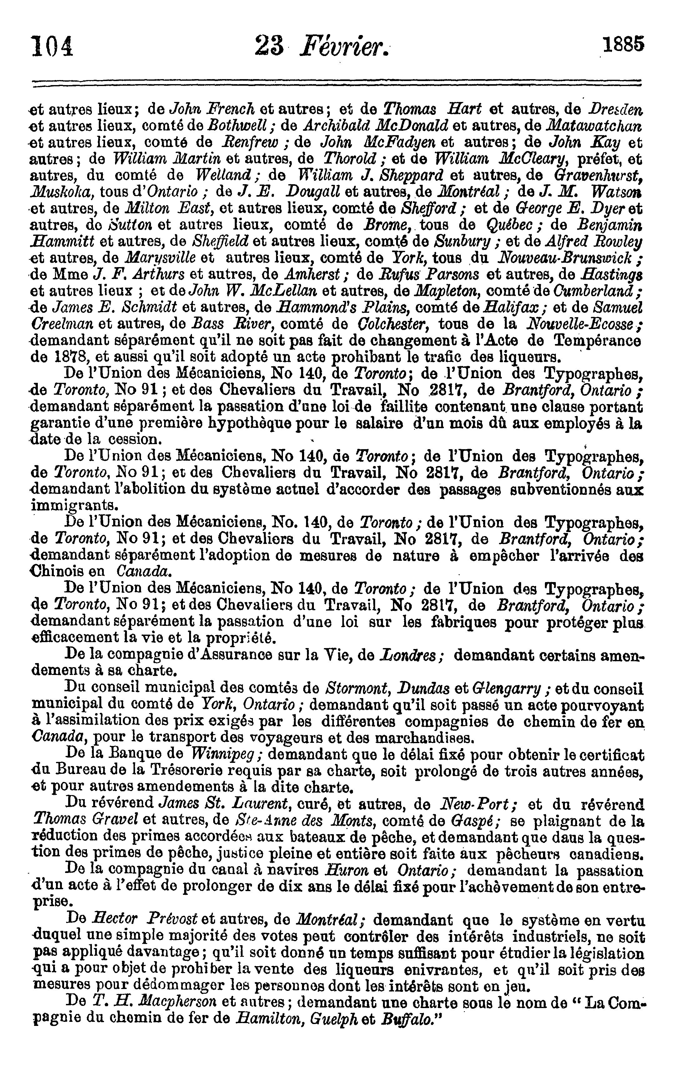 Journaux de la Chambre des communes du Canada du 29 janvier au 20 juillet 1885, inclusivement, dans les quarante-huitième et quarante-neuvième années du règne de Sa Majesté la Reine Victoria : 3e session du 5e parlement du Canada, session 1885 : 1885
