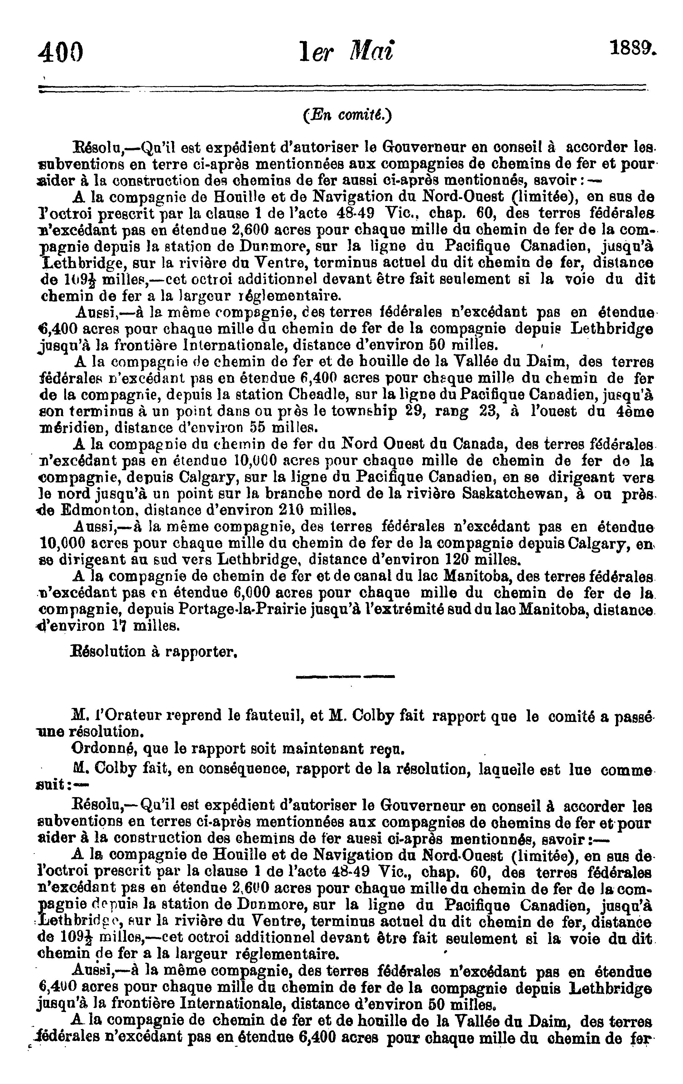 Journaux de la Chambre des communes du Canada du 31 janvier au 2 mai 1889, ces deux jours inclus, dans la cinquante-deuxième année du règne de Sa Majesté la Reine Victoria : étant la 3e session du 6e parlement du Canada, session 1889 : 1889