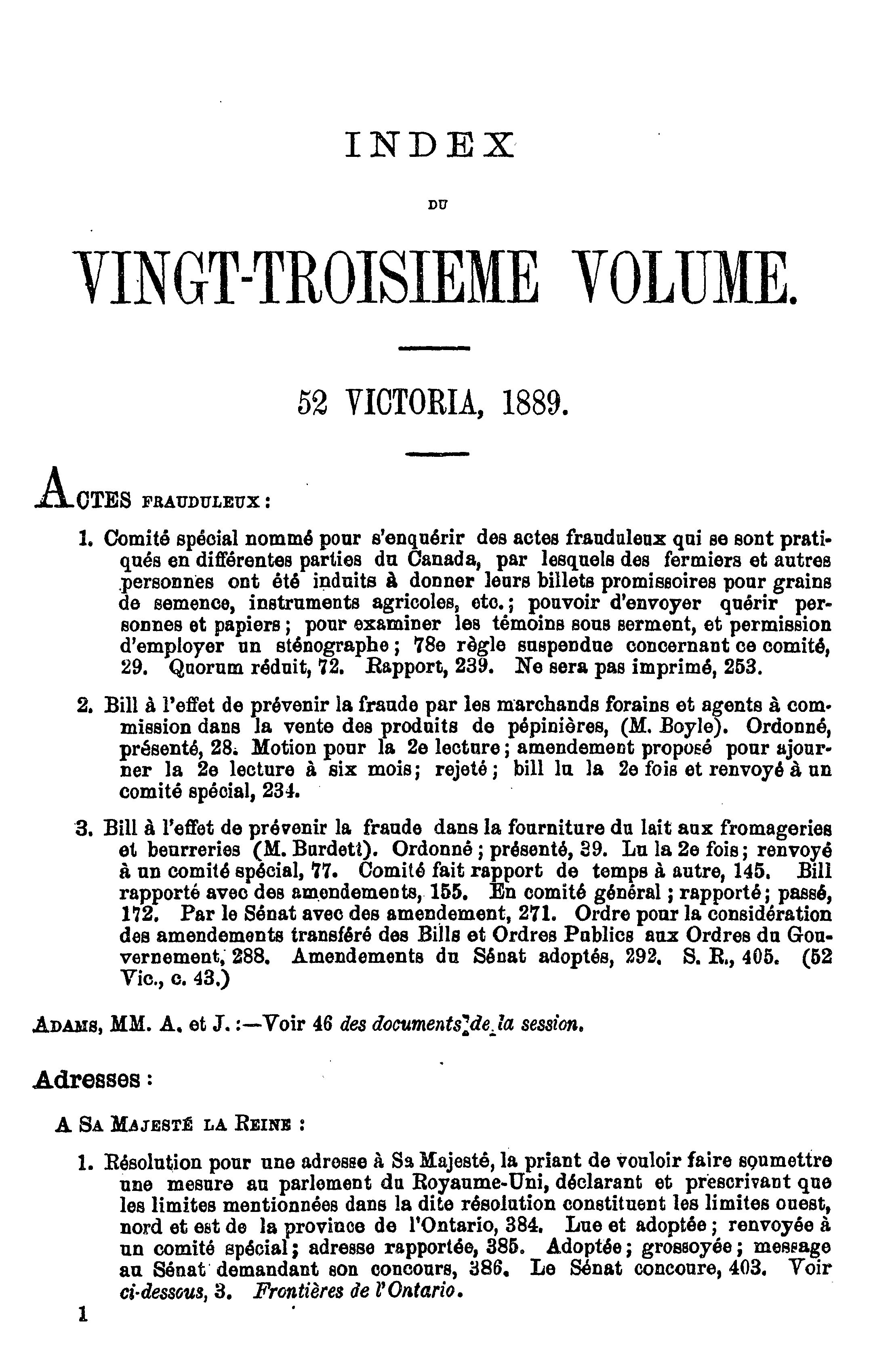 Journaux de la Chambre des communes du Canada du 31 janvier au 2 mai 1889, ces deux jours inclus, dans la cinquante-deuxième année du règne de Sa Majesté la Reine Victoria : étant la 3e session du 6e parlement du Canada, session 1889 : 1889