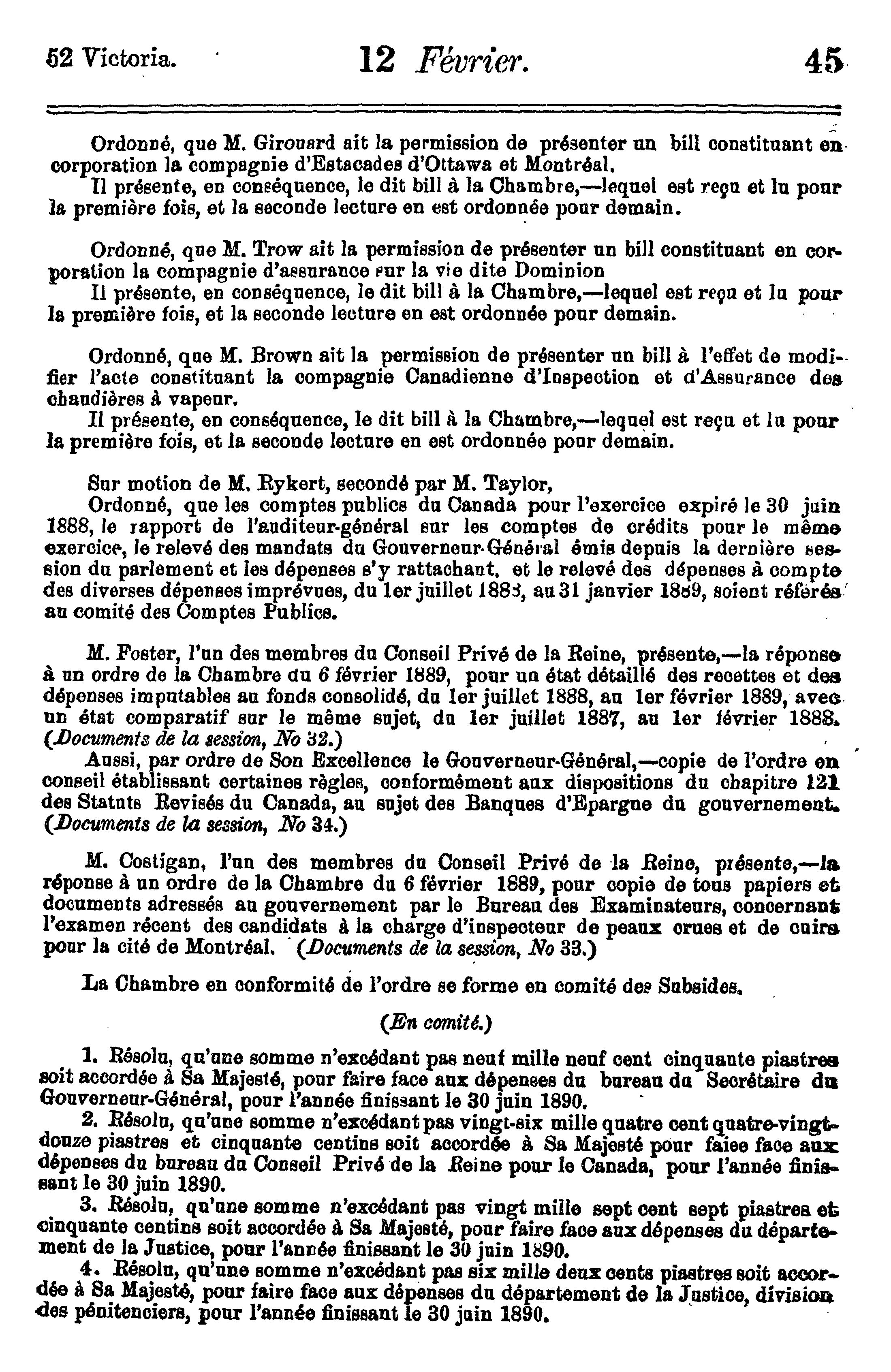 Journaux de la Chambre des communes du Canada du 31 janvier au 2 mai 1889, ces deux jours inclus, dans la cinquante-deuxième année du règne de Sa Majesté la Reine Victoria : étant la 3e session du 6e parlement du Canada, session 1889 : 1889