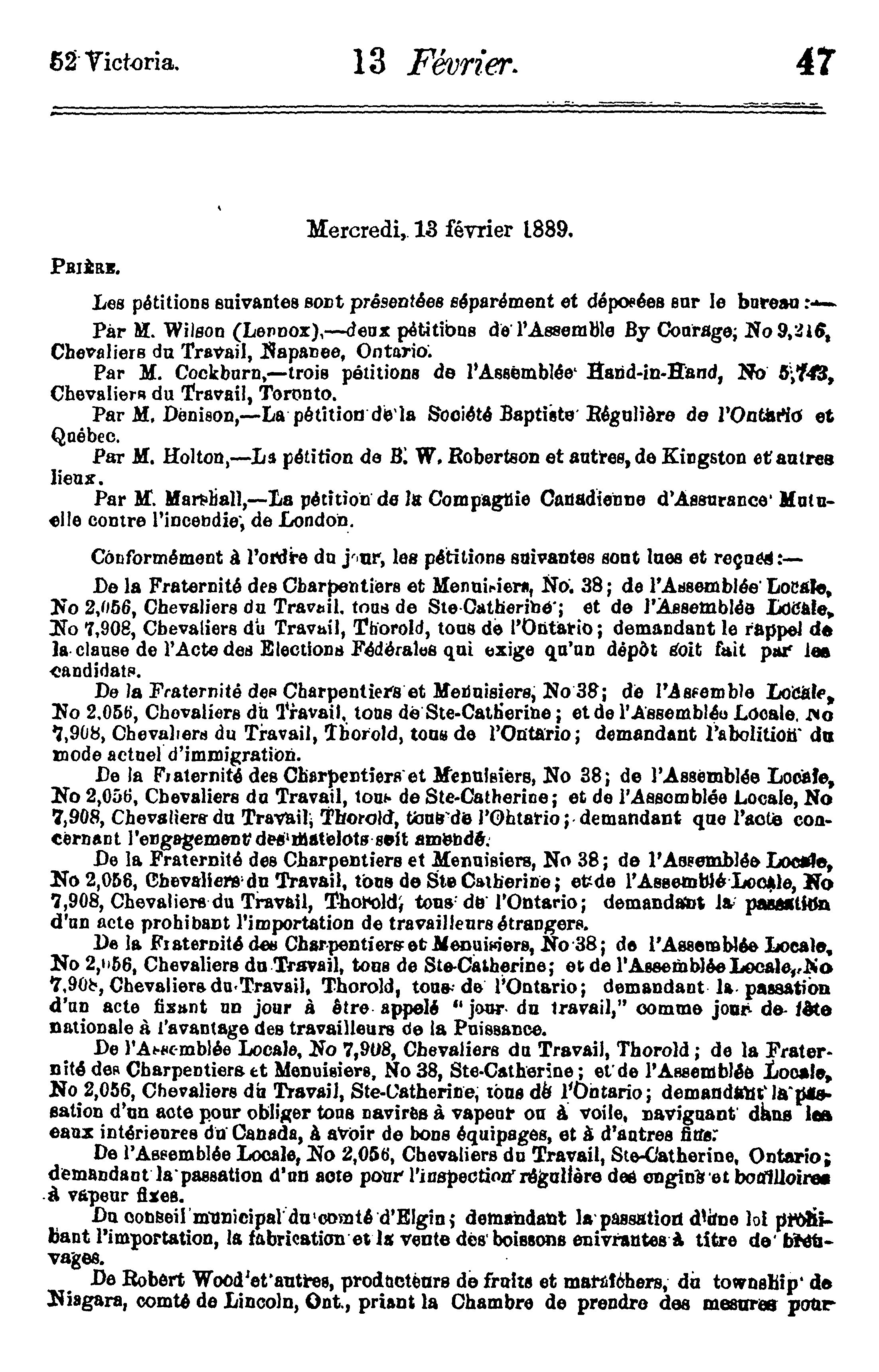 Journaux de la Chambre des communes du Canada du 31 janvier au 2 mai 1889, ces deux jours inclus, dans la cinquante-deuxième année du règne de Sa Majesté la Reine Victoria : étant la 3e session du 6e parlement du Canada, session 1889 : 1889