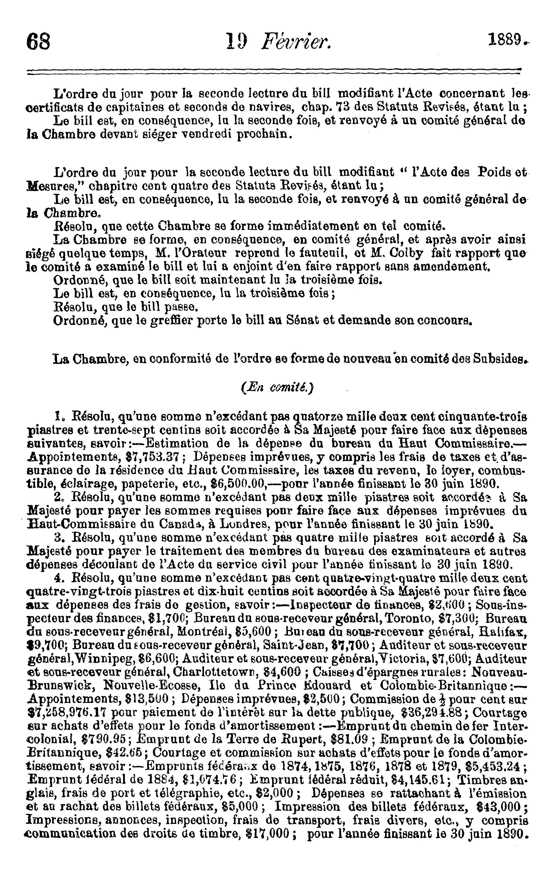 Journaux de la Chambre des communes du Canada du 31 janvier au 2 mai 1889, ces deux jours inclus, dans la cinquante-deuxième année du règne de Sa Majesté la Reine Victoria : étant la 3e session du 6e parlement du Canada, session 1889 : 1889