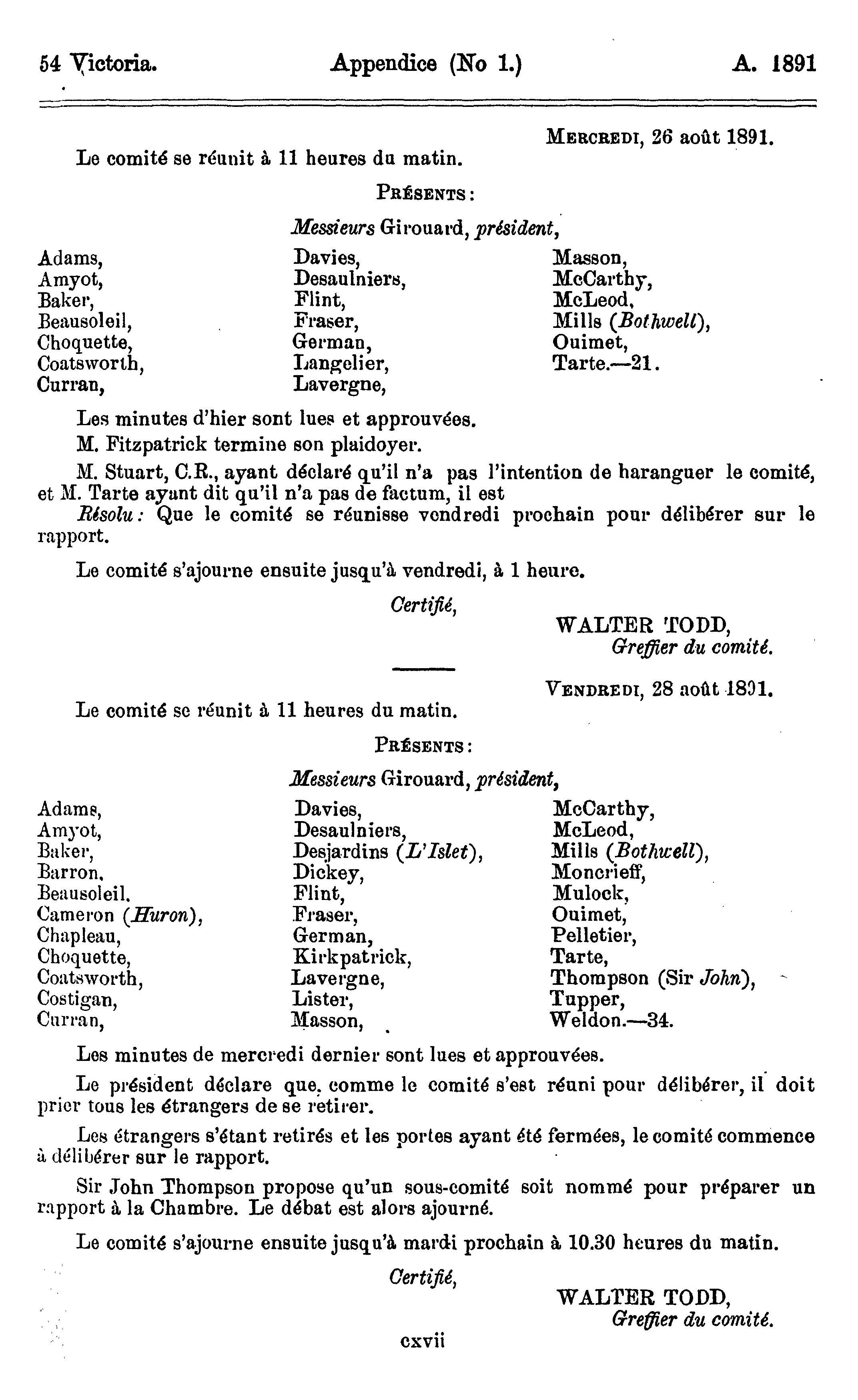 Journaux de la Chambre des communes de la puissance du Canada : Appendice du vingt-cinquième volume des journaux de la Chambre des communes du Canada du 29 avril 1891 au 30 septembre 1891, inclusivement, session 1891 : 1891