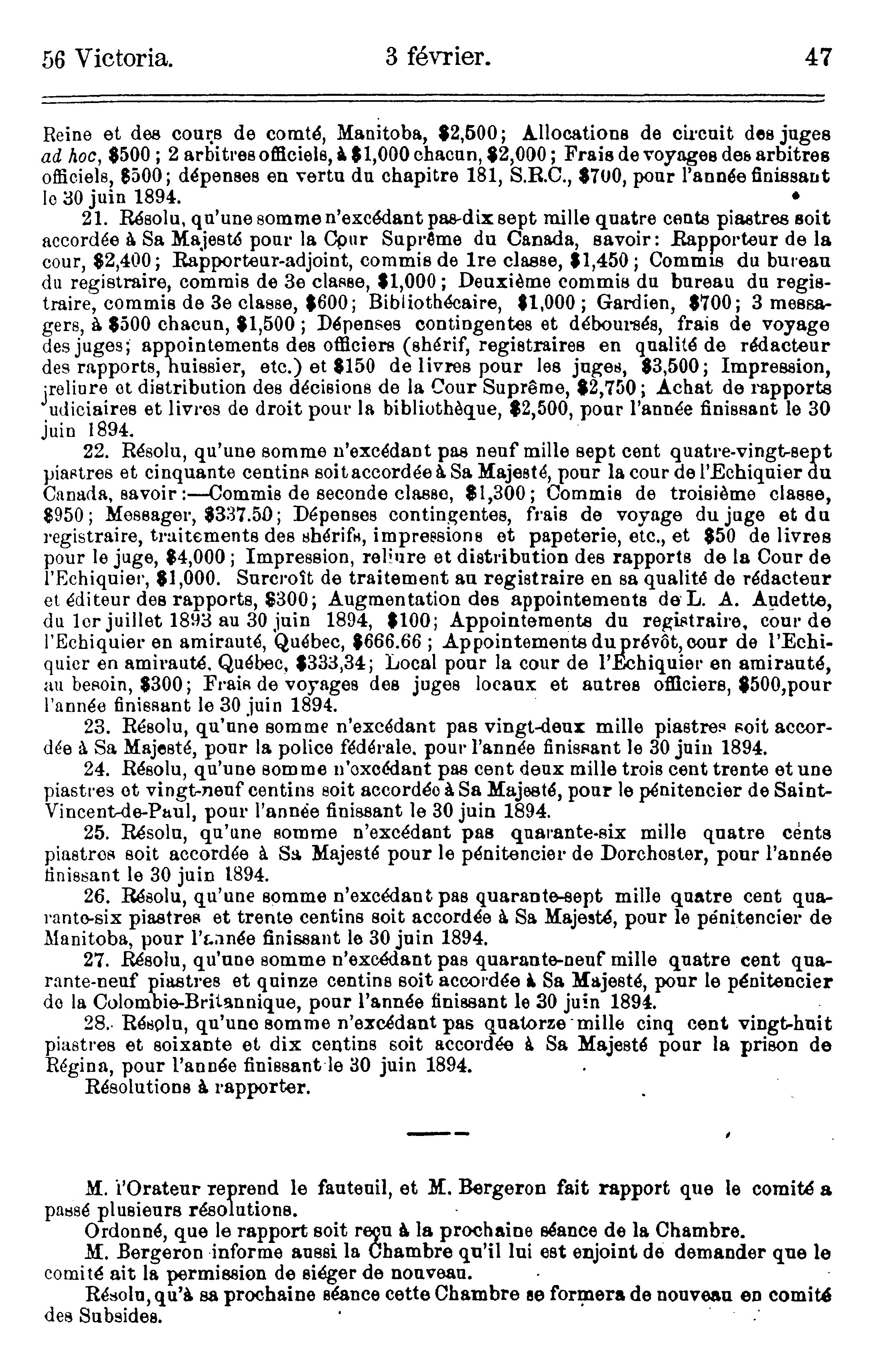 Journaux de la Chambre des communes du Canada du 26 janvier au 1er avril 1893, inclusivement, dans la cinquante-sixième année du règne de Notre Souveraine Dame la Reine Victoria, trosième session du septième parlement du Canada, session 1893 : 1893