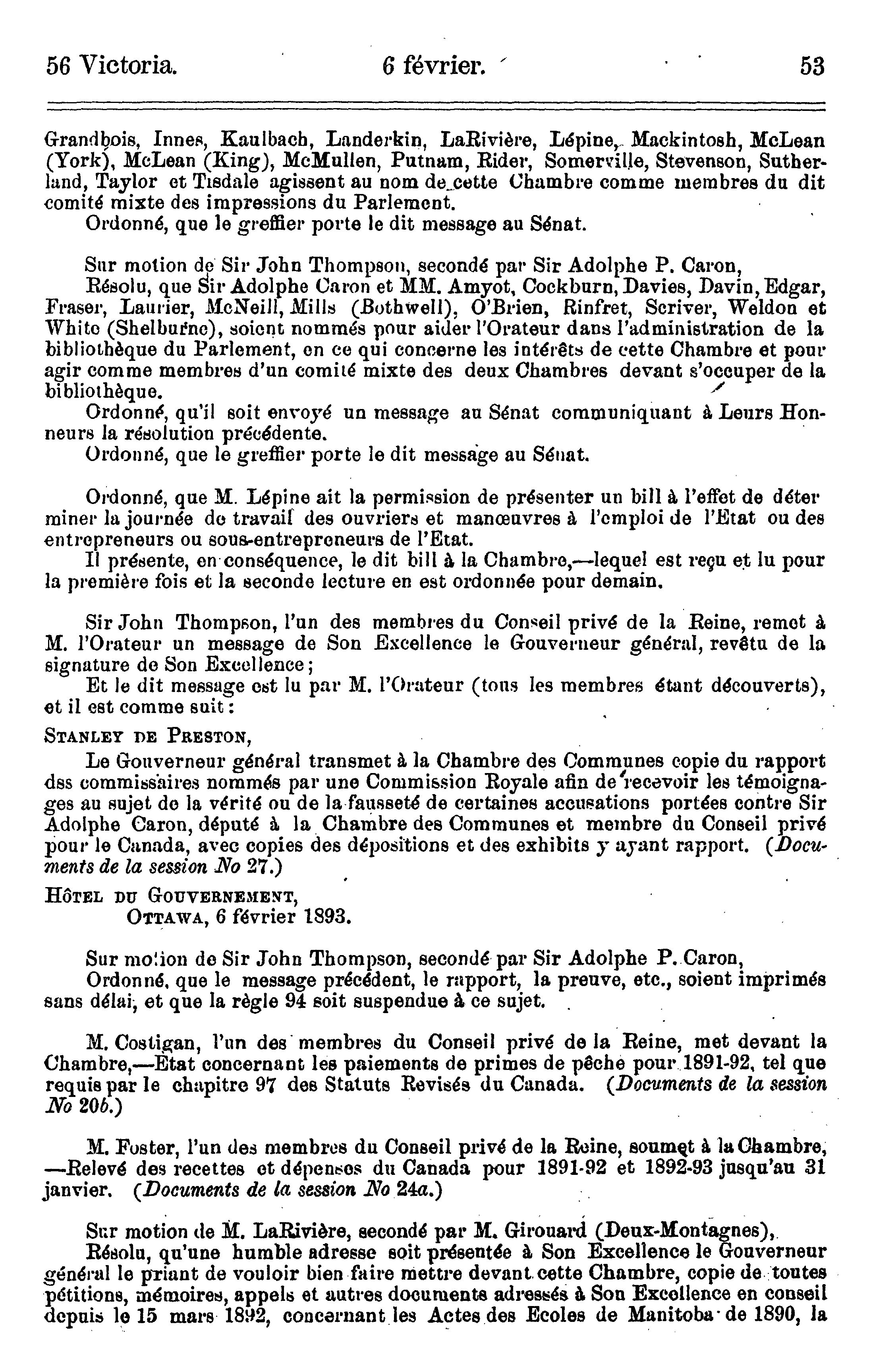 Journaux de la Chambre des communes du Canada du 26 janvier au 1er avril 1893, inclusivement, dans la cinquante-sixième année du règne de Notre Souveraine Dame la Reine Victoria, trosième session du septième parlement du Canada, session 1893 : 1893