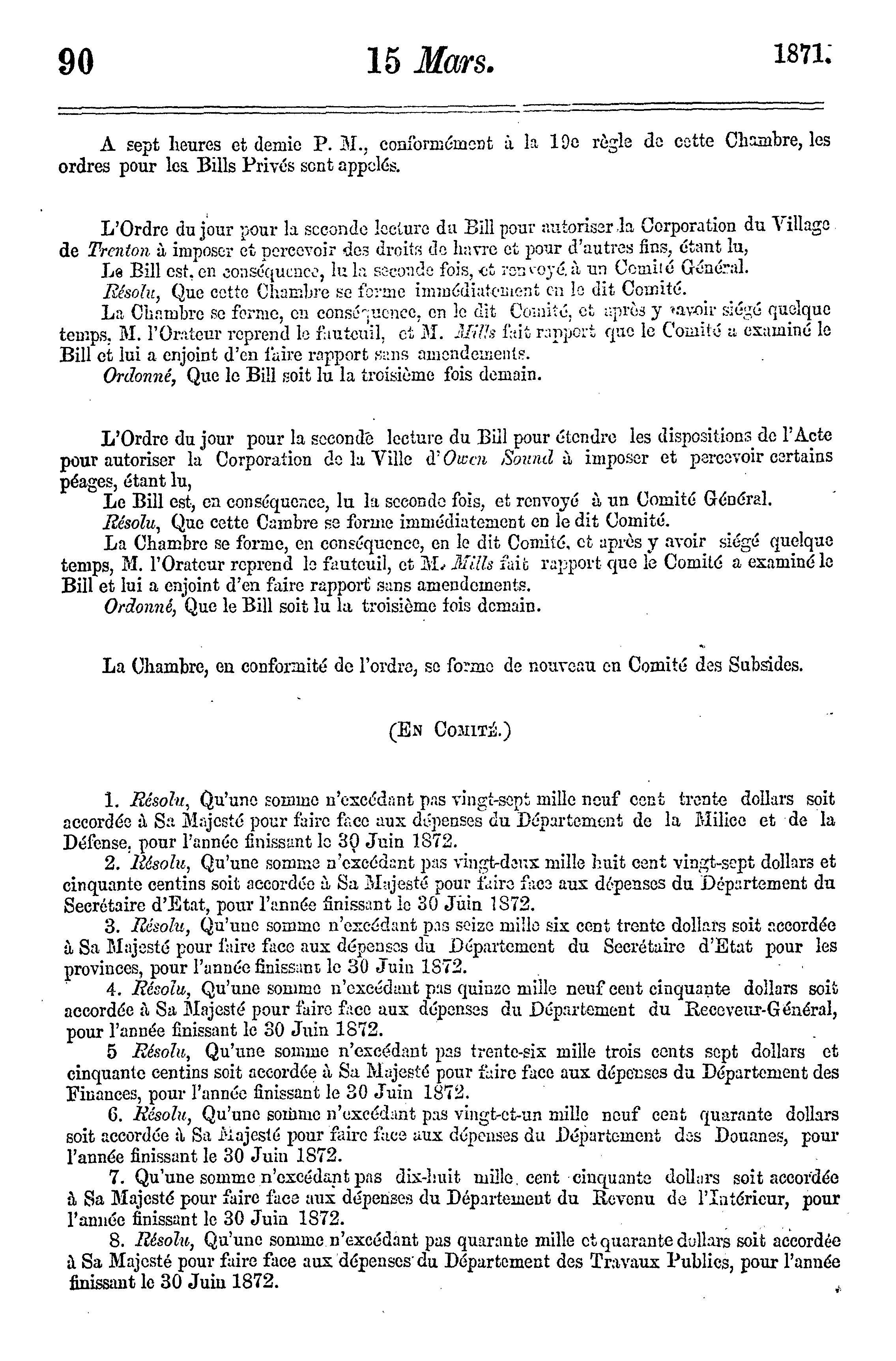 Journaux de la Chambre des communes de la puissance du Canada depuis le 15 février jusqu'au 14 avril 1871, les deux jours inclus, dans la trente-quatrième année du règne de notre souveraine dame la Reine Victoria : étant la 4e session du 1er parlement de la puissance du Canada, session de 1871 : 1871