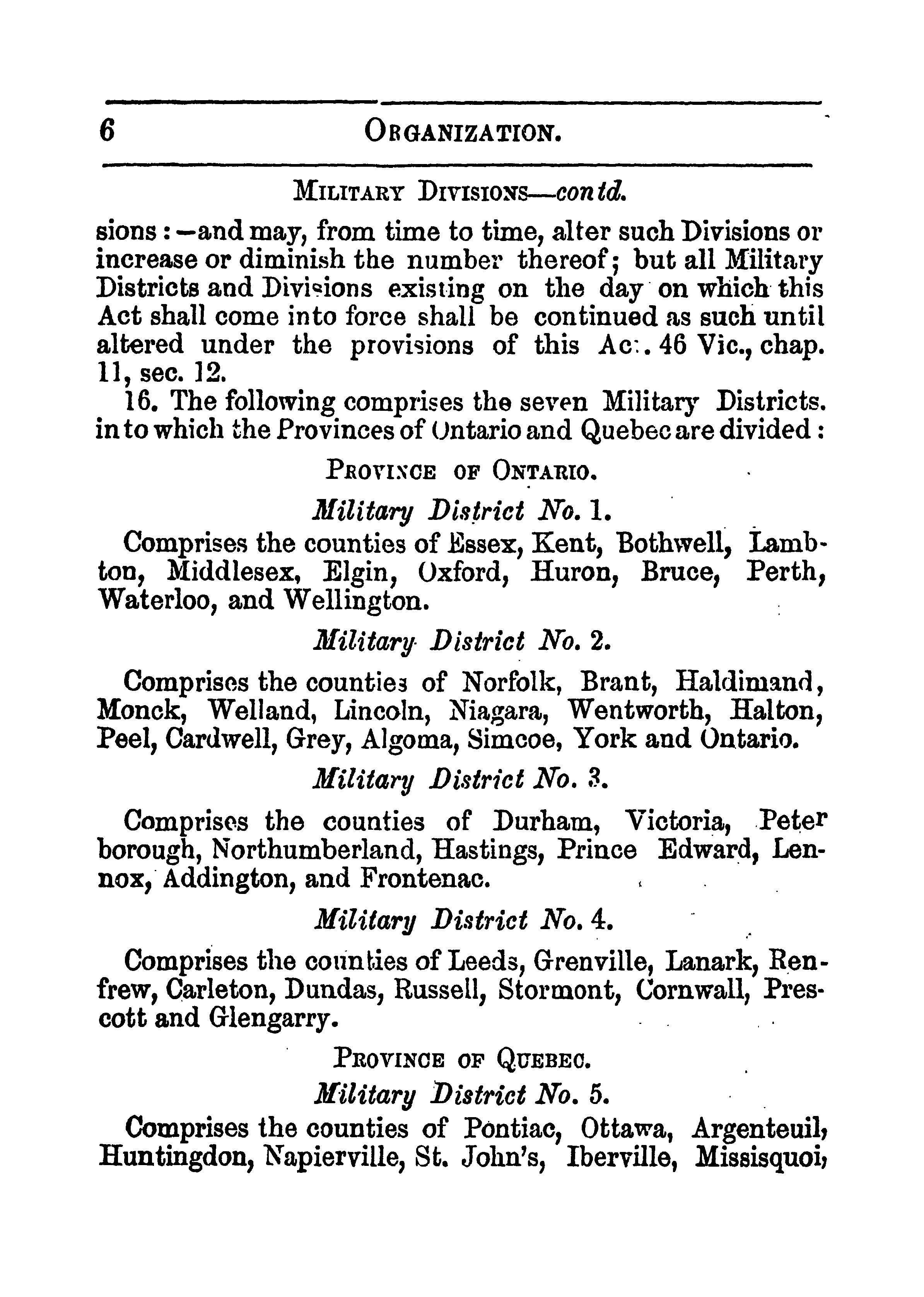 Statutory provisions : regulations and orders for the militia of the Dominion of Canada, 1st September, 1883. - Adresse bibliographique