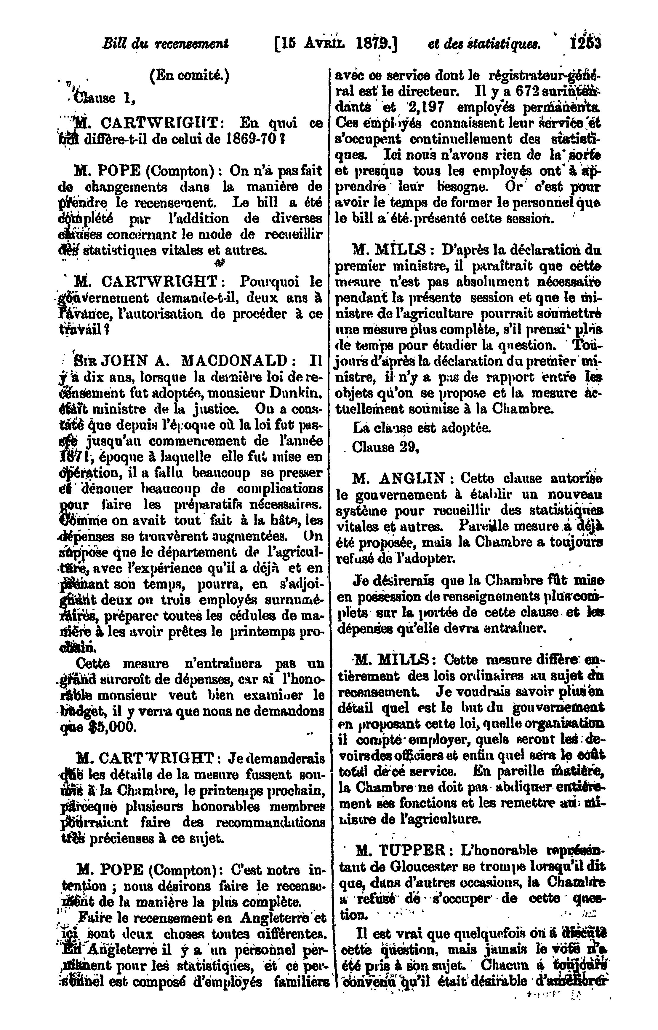 Débats de la Chambre des communes du Canada : Débats de la Chambre des communes du Canada ... première session, quatrième parlement, 42 Victoria ... du huit avril 1879 au quinze mai 1879, inclusivement, second volume de la session : 1879 (ptie 2)