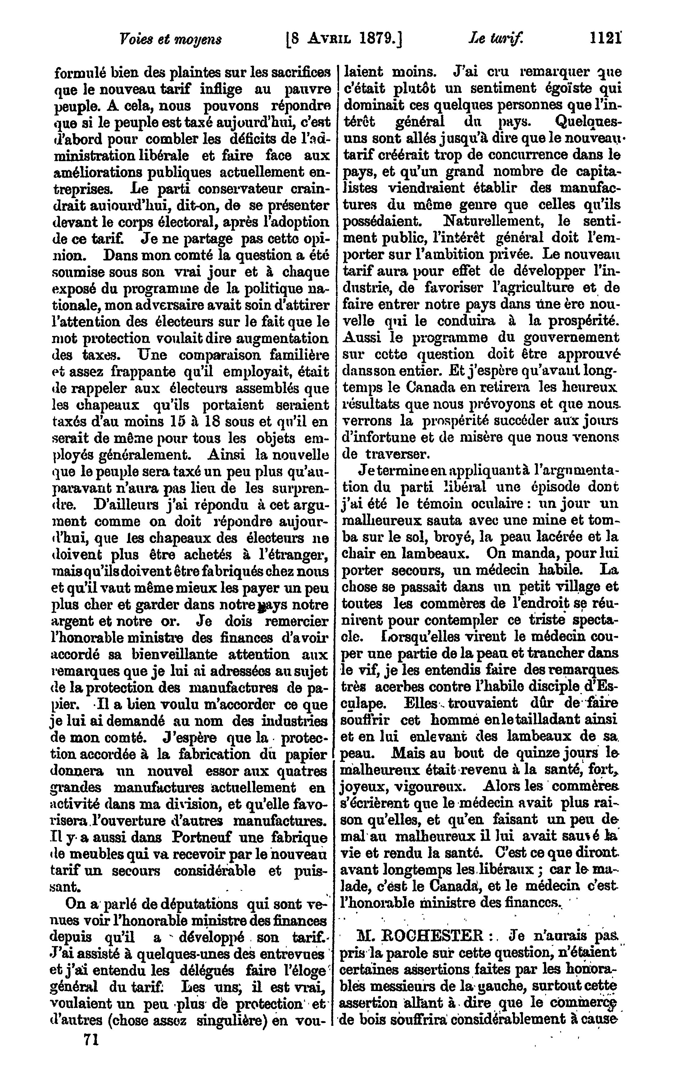 Débats de la Chambre des communes du Canada : Débats de la Chambre des communes du Canada ... première session, quatrième parlement, 42 Victoria ... du huit avril 1879 au quinze mai 1879, inclusivement, second volume de la session : 1879 (ptie 2)