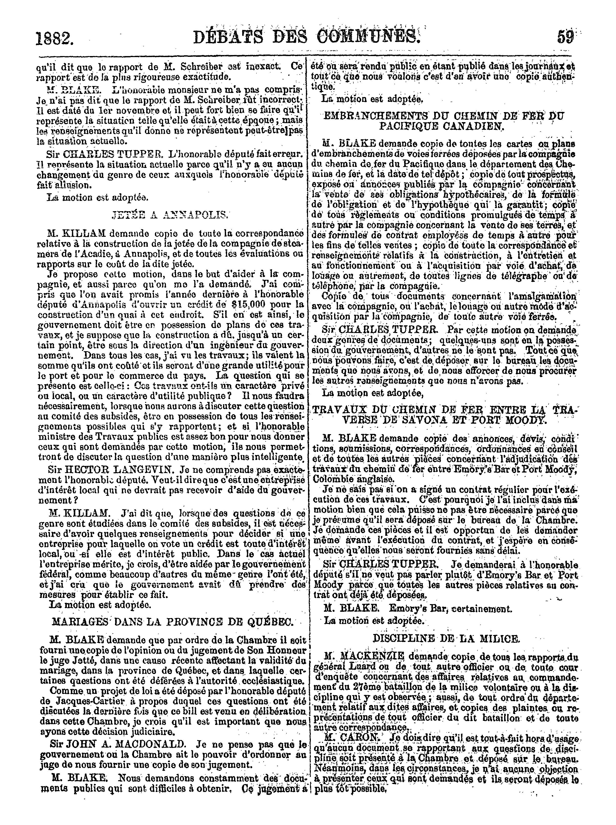 Débats de la Chambre des communes du Canada : compte-rendu officiel, 4me parlement, 4me session, 45 Victoria, 1882 ... du neuvième jour de février au dix-septième jour de mai 1882, inclusivement : 1882