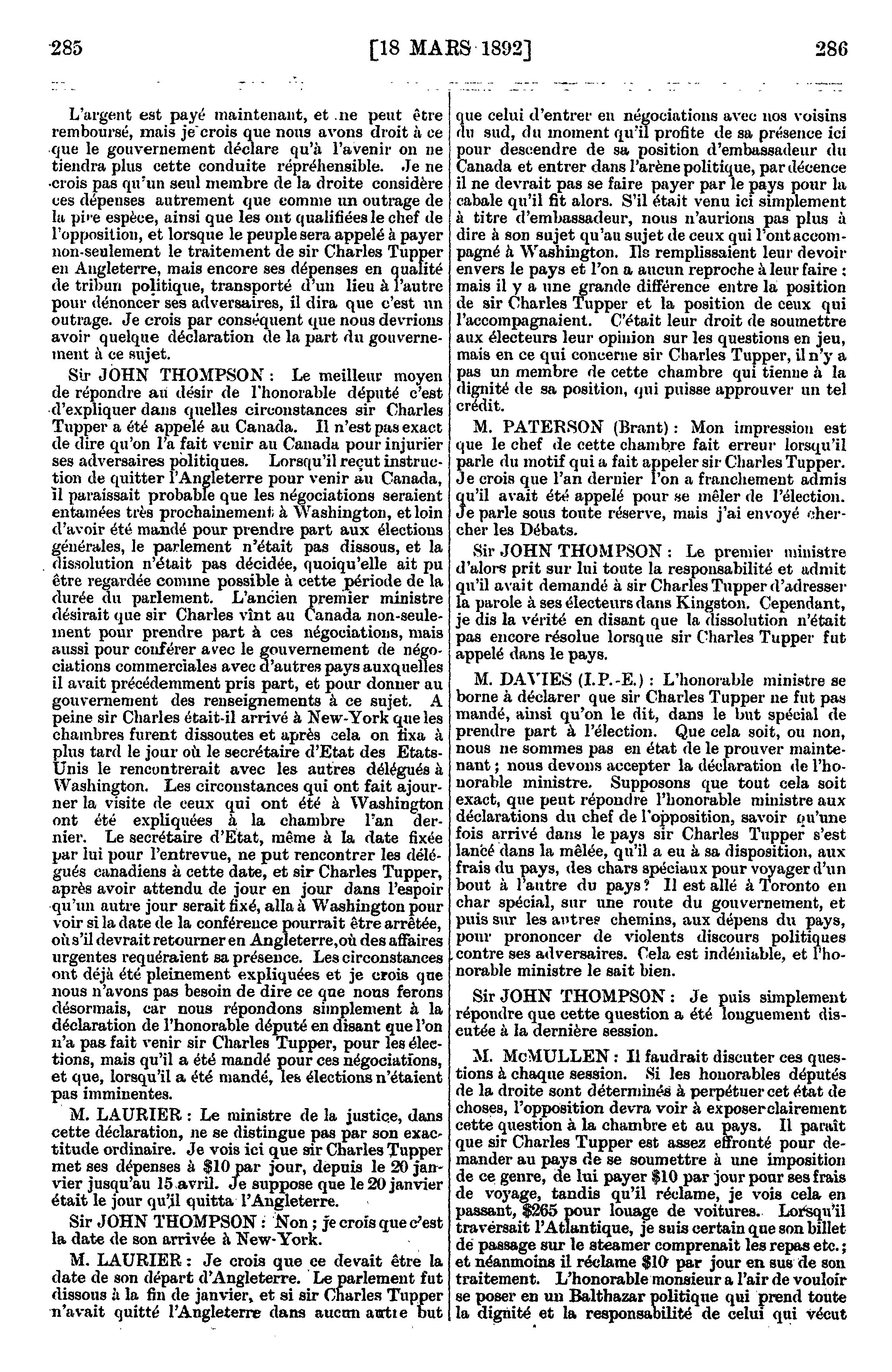 Compte rendu officiel des débats de la Chambre des communes du Canada : deuxième session, septième parlement, 55-56 Victoriae, 1892, vol. XXXIV, comprenant la période entre le vingt-cinquième jour de février et le neuvième jour de mai, inclusivement : 1892 (ptie 1)