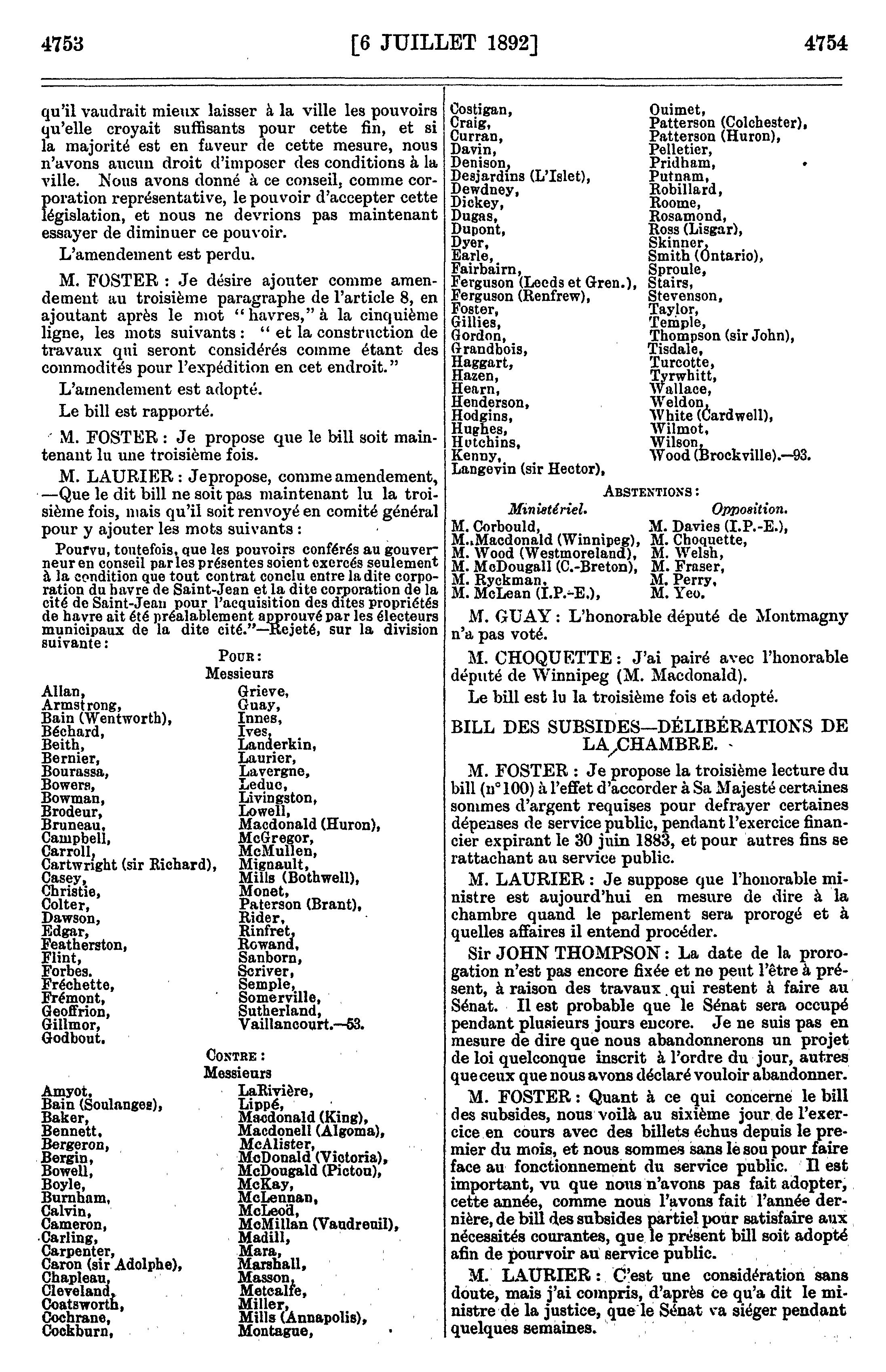 Compte-rendu officiel des débats de la Chambre des communes du Canada : Compte rendu officiel des débats de la Chambre des communes du Canada : deuxième session, septième parlement, 55-56 Victoriae, 1892, vol. XXXV, comprenant la période entre le dixième jour de mai et le neuvième jour de juillet, inclusivement : 1892 (ptie 2)