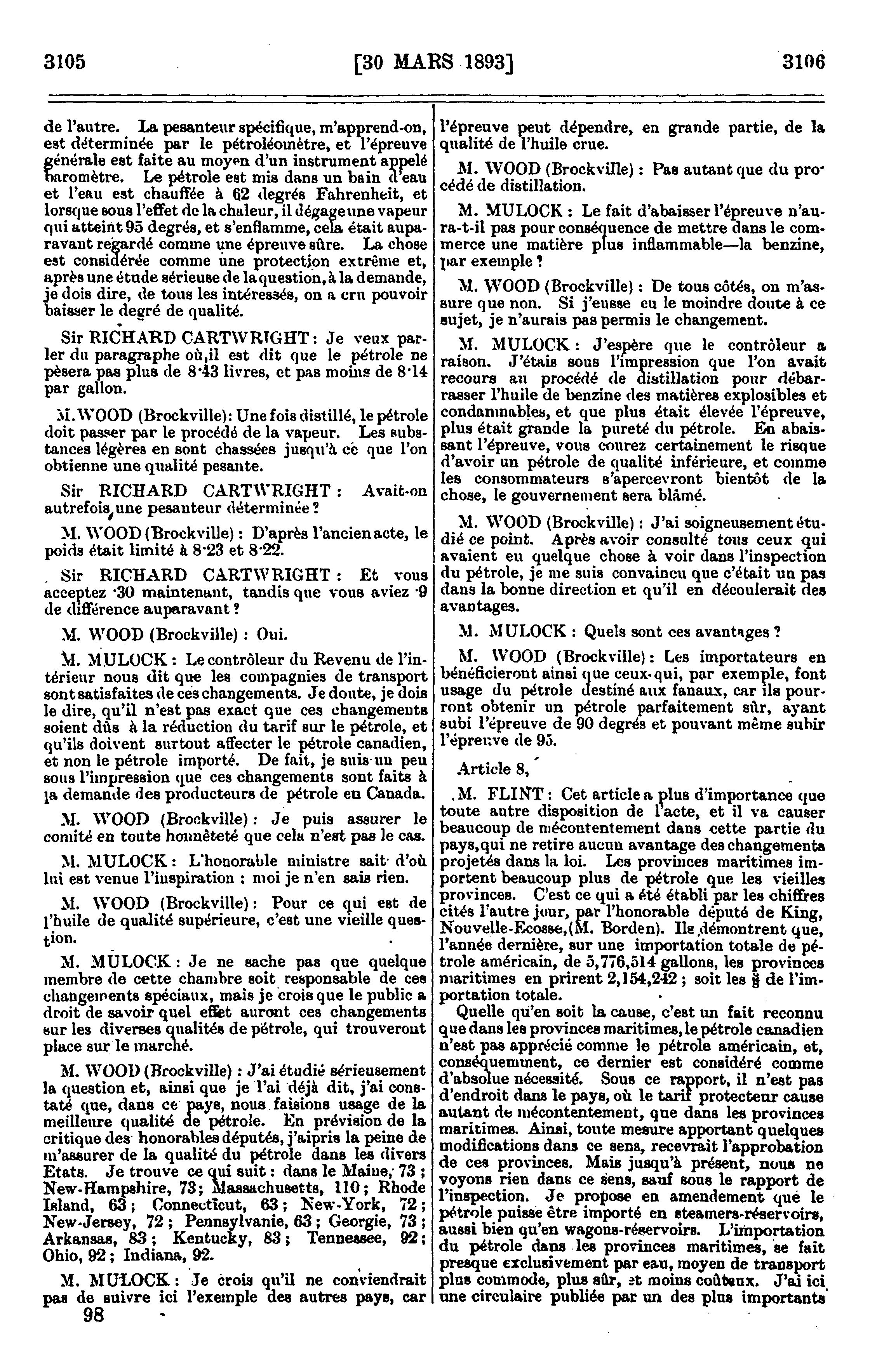 Compte rendu officiel des débats de la Chambre des communes du Canada : troisième session, septième parlement, 56 Victoriae, 1893, vol. XXXVI, comprenant la période depuis le vingt-sixième jour de janvier jusqu'au premier jour d'avril, inclusivement : 1893