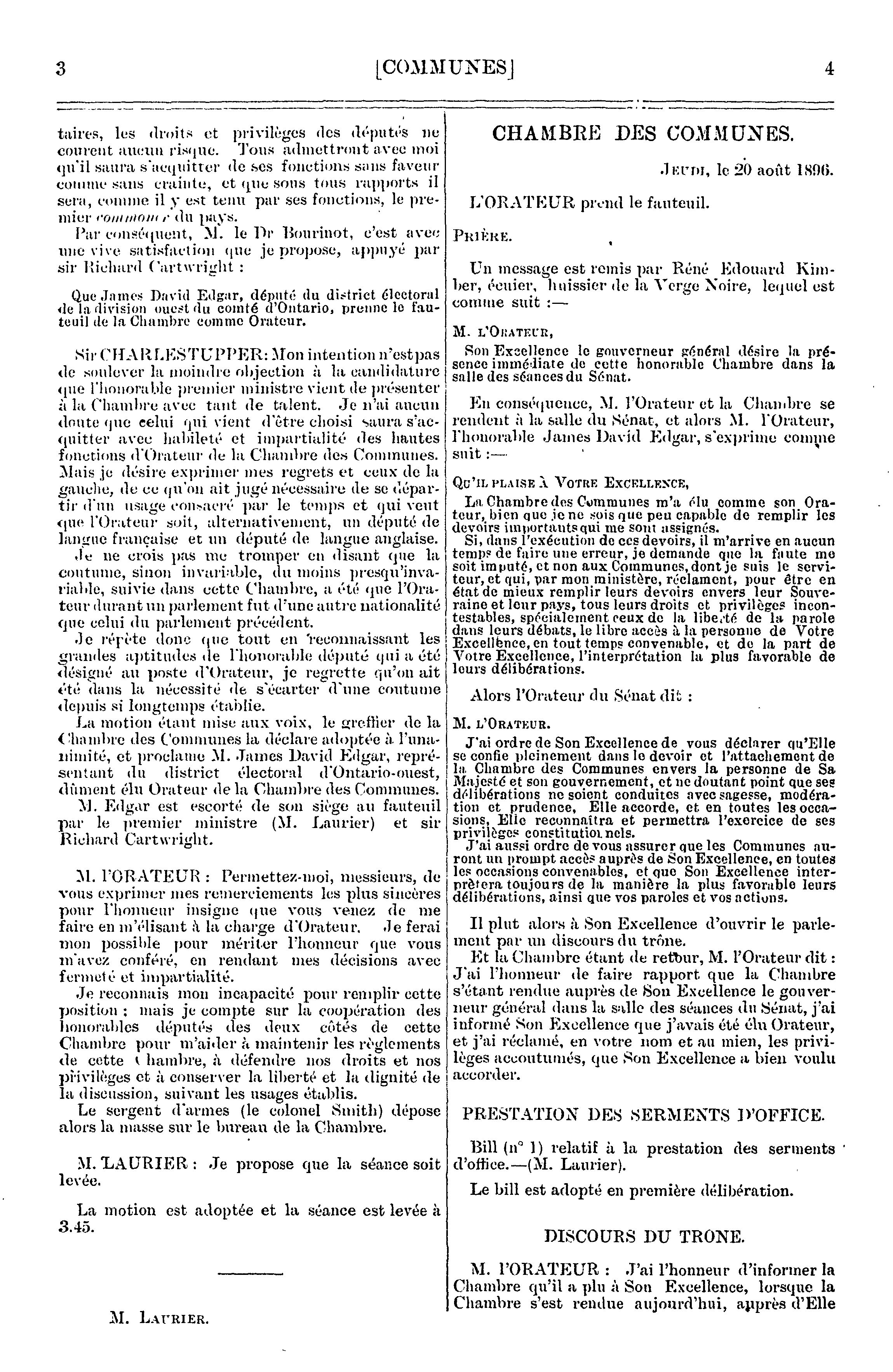 Compte rendu officiel des débats de la Chambre des communes du Canada : première session, huitième parlement, 60 Victoria, 1896, vol. XLIII, comprenant la période depuis le dix-neuvième jour d'août jusqu'au cinquième jour d'octobre, inclusivement : 1896