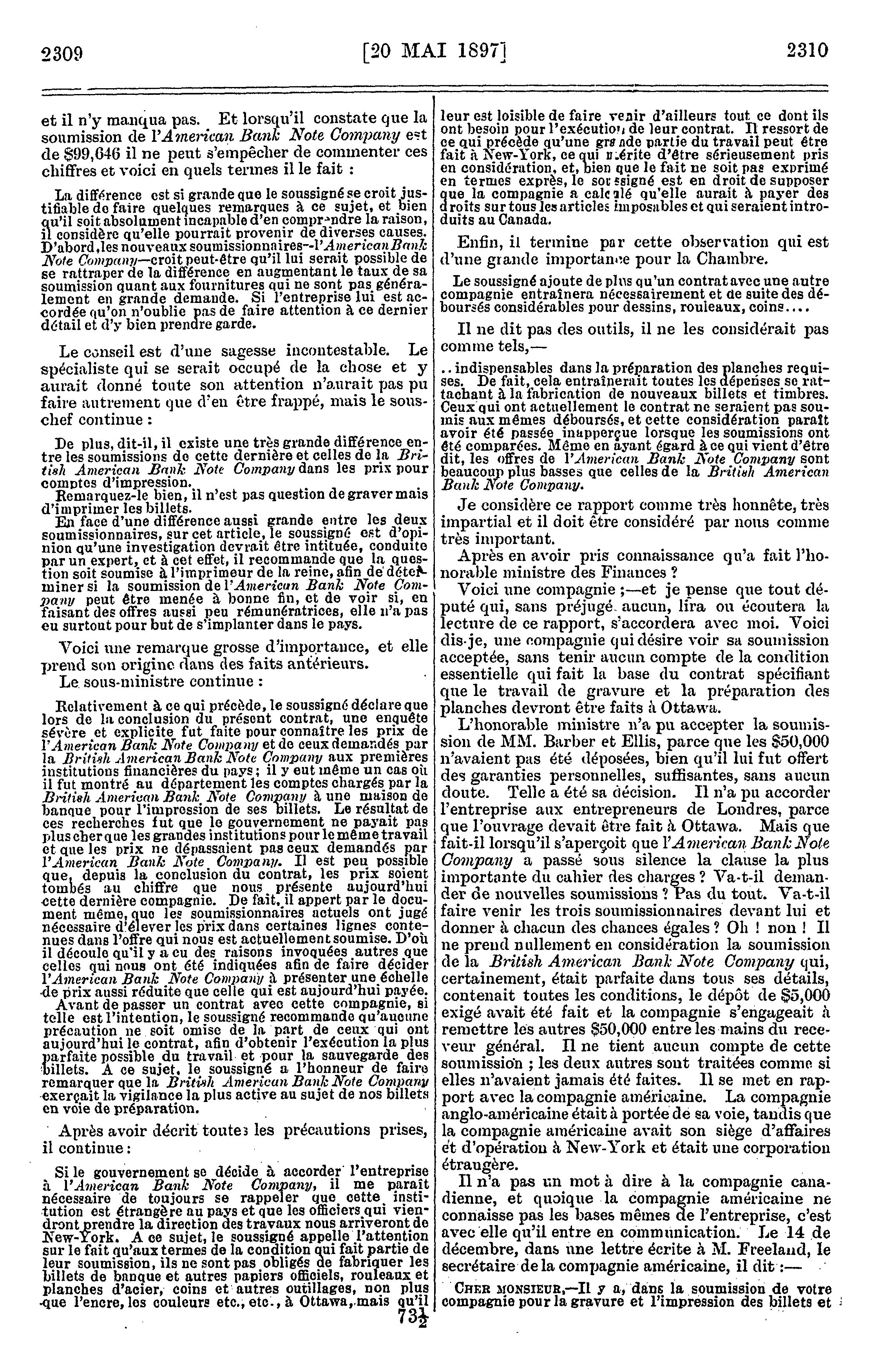 Compte-rendu officiel des débats de la Chambre des communes du Canada : Compte rendu officiel des débats de la Chambre des communes du Canada : deuxième session, huitième parlement, 60-61 Victoria, 1897, vol. XLV, comprenant la période depuis le vingtième jour de mai jusqu'au vingt-neuvième jour de juin, inclusivement : 1897 (ptie 2)