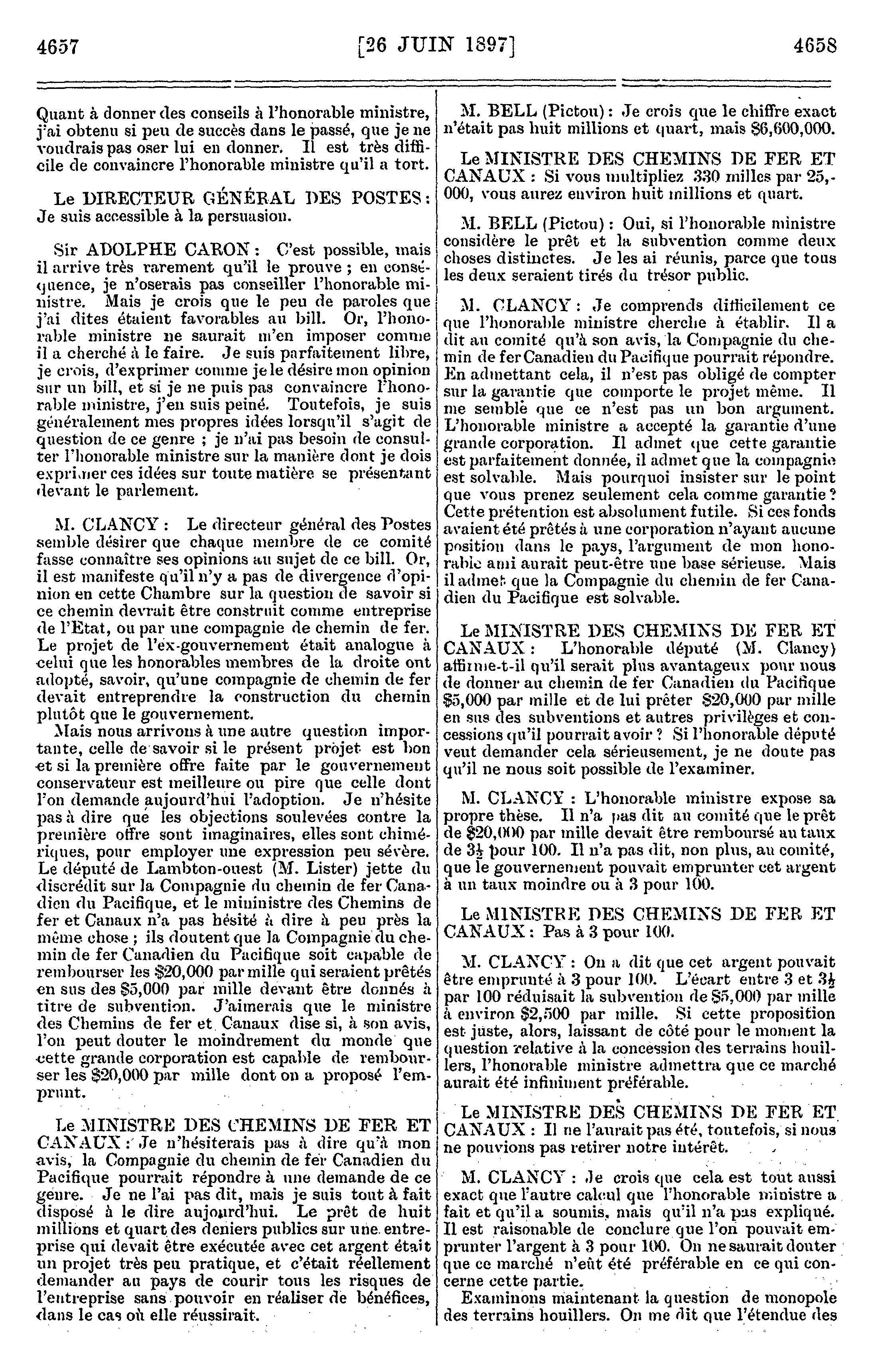 Compte rendu officiel des débats de la Chambre des communes du Canada : deuxième session, huitième parlement, 60-61 Victoria, 1897, vol. XLV, comprenant la période depuis le vingtième jour de mai jusqu'au vingt-neuvième jour de juin, inclusivement : 1897 (ptie 2)