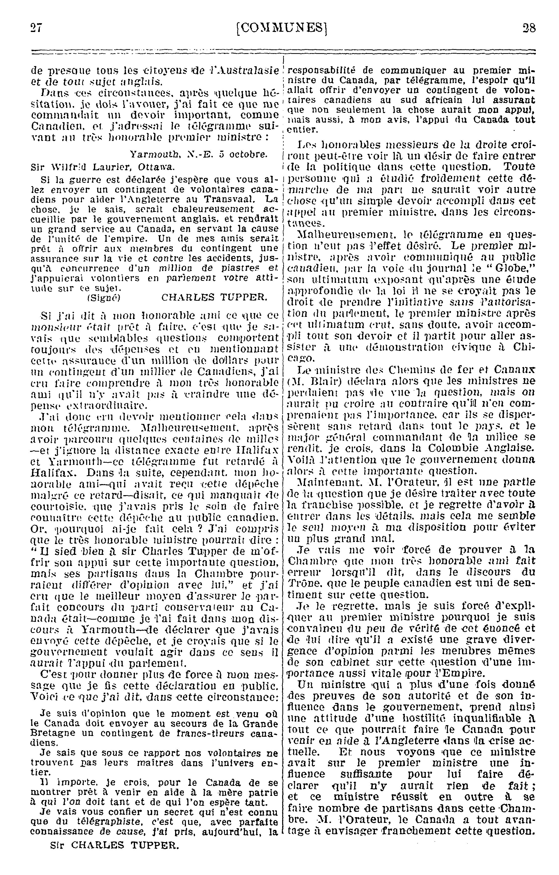Compte-rendu officiel des débats de la Chambre des communes du Canada :