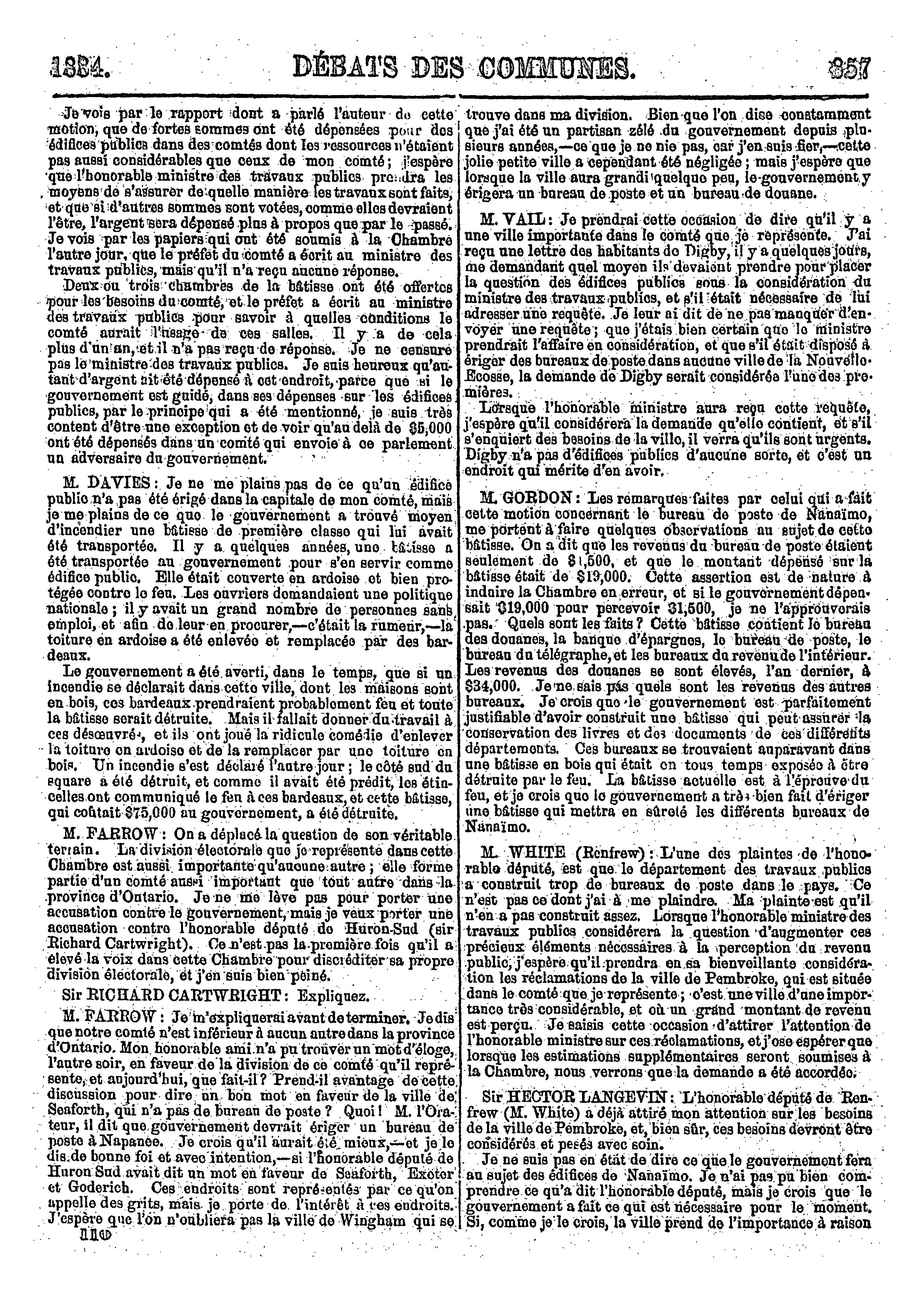 Compte-rendu officiel des débats de la Chambre des communes du Canada : deuxième session, cinquième parlement, 47 Victoria, 1884, vol. XVI du douzième jour de mars au dix-neuvième jour d'avril 1884 inclusivement : 1884 (ptie 2)