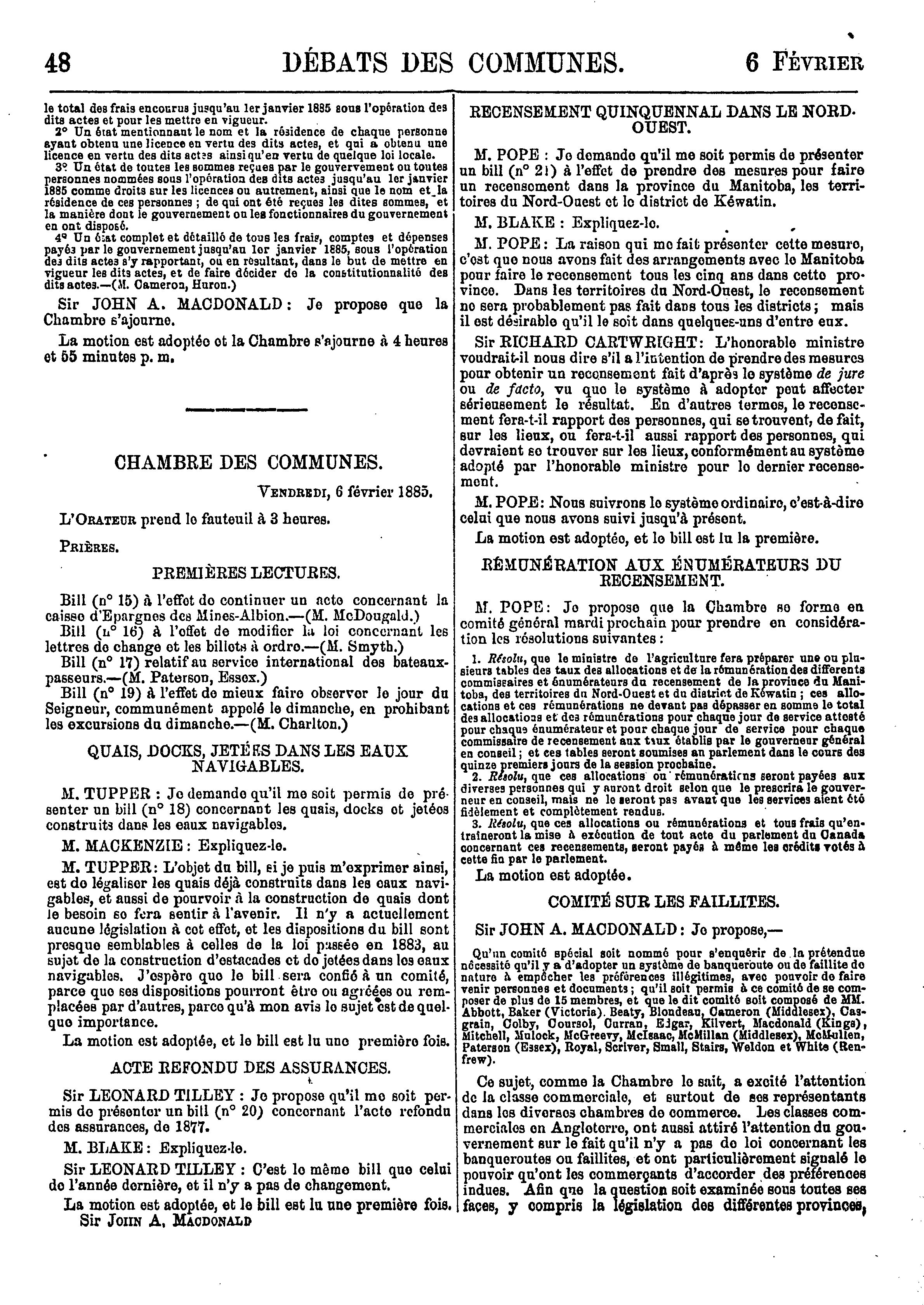 Compte-rendu officiel des débats de la Chambre des communes du Canada : troisième session, cinquième parlement, 48-49 Victoria, 1885, vol. XVII, du vingt-neuvième jour de janvier au vingt-sixième jour de mars 1885 : 1885 (ptie 1)