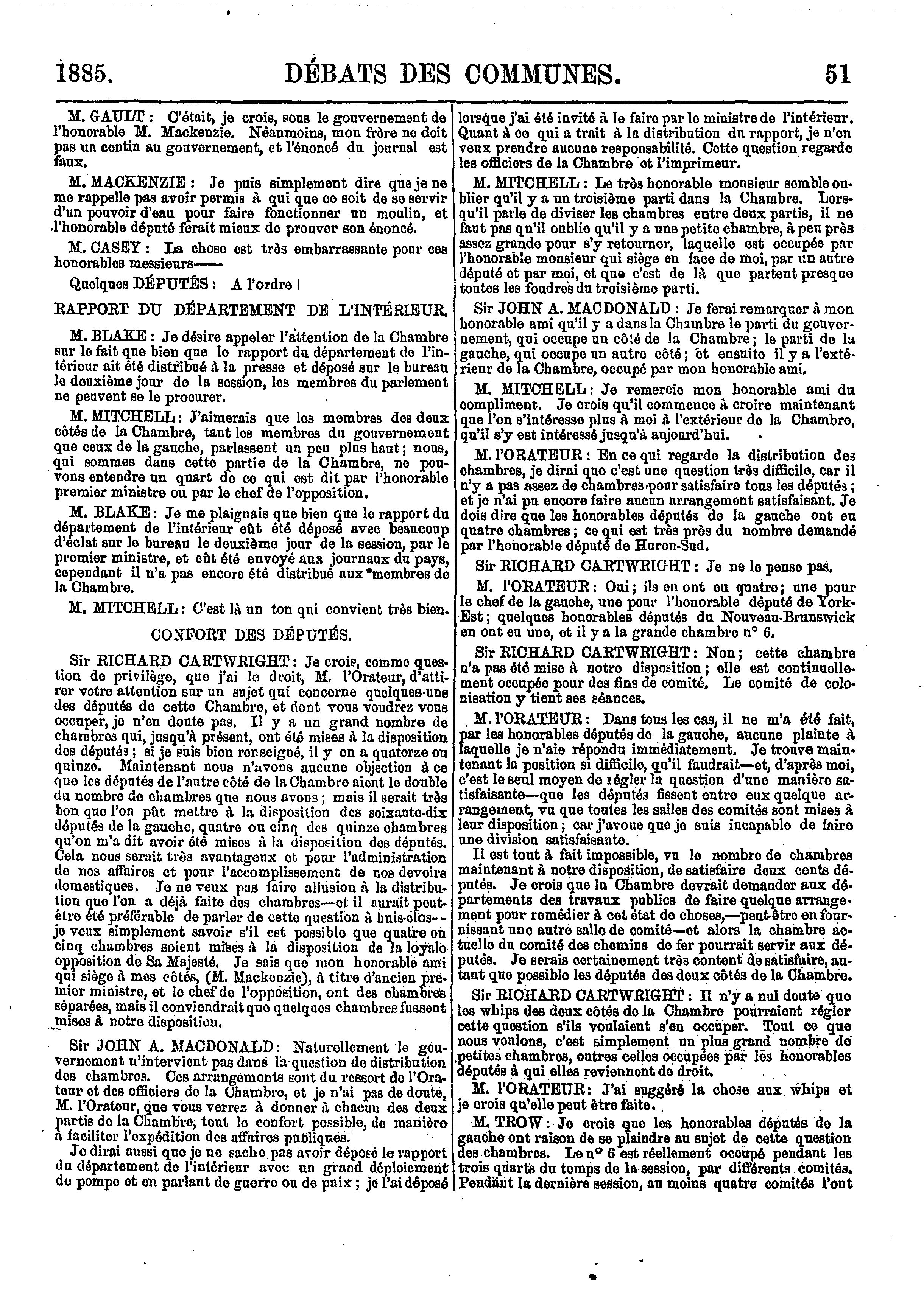 Compte-rendu officiel des débats de la Chambre des communes du Canada : troisième session, cinquième parlement, 48-49 Victoria, 1885, vol. XVII, du vingt-neuvième jour de janvier au vingt-sixième jour de mars 1885 : 1885 (ptie 1)