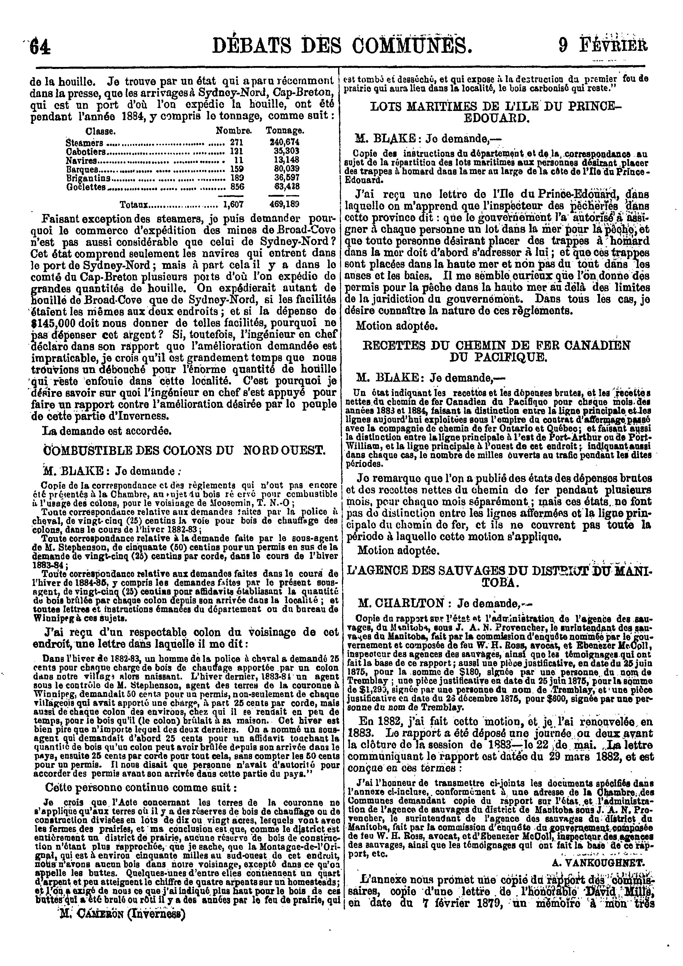 Compte-rendu officiel des débats de la Chambre des communes du Canada : troisième session, cinquième parlement, 48-49 Victoria, 1885, vol. XVII, du vingt-neuvième jour de janvier au vingt-sixième jour de mars 1885 : 1885 (ptie 1)