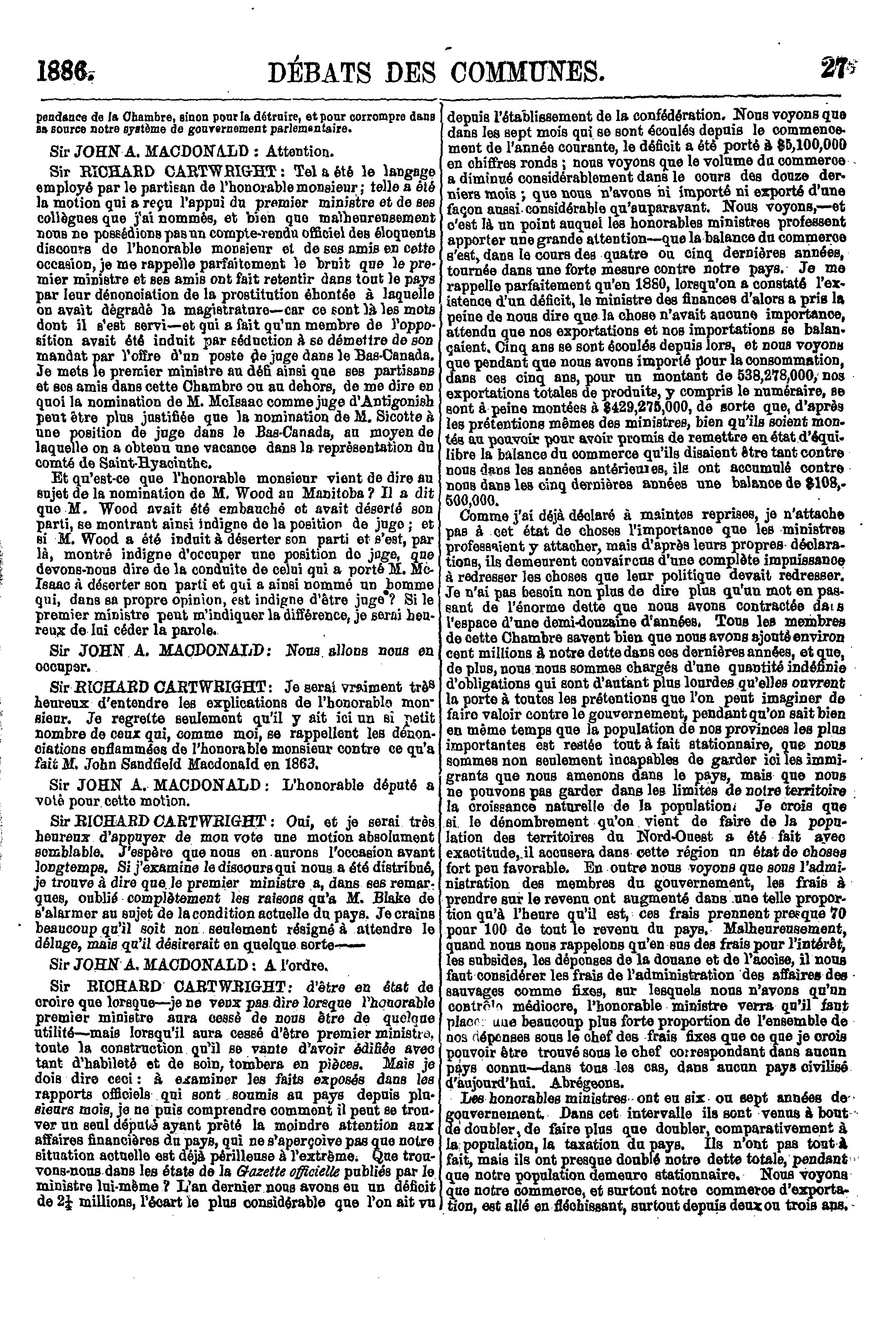 Compte-rendu officiel des débats de la Chambre des communes du Canada : quatrième session, cinquième parlement, 49 Victoria, 1886, vol. XXI, du vingt-cinquième jour de février au dix-neuvième jour d'avril 1886 : 1886 (ptie 1)