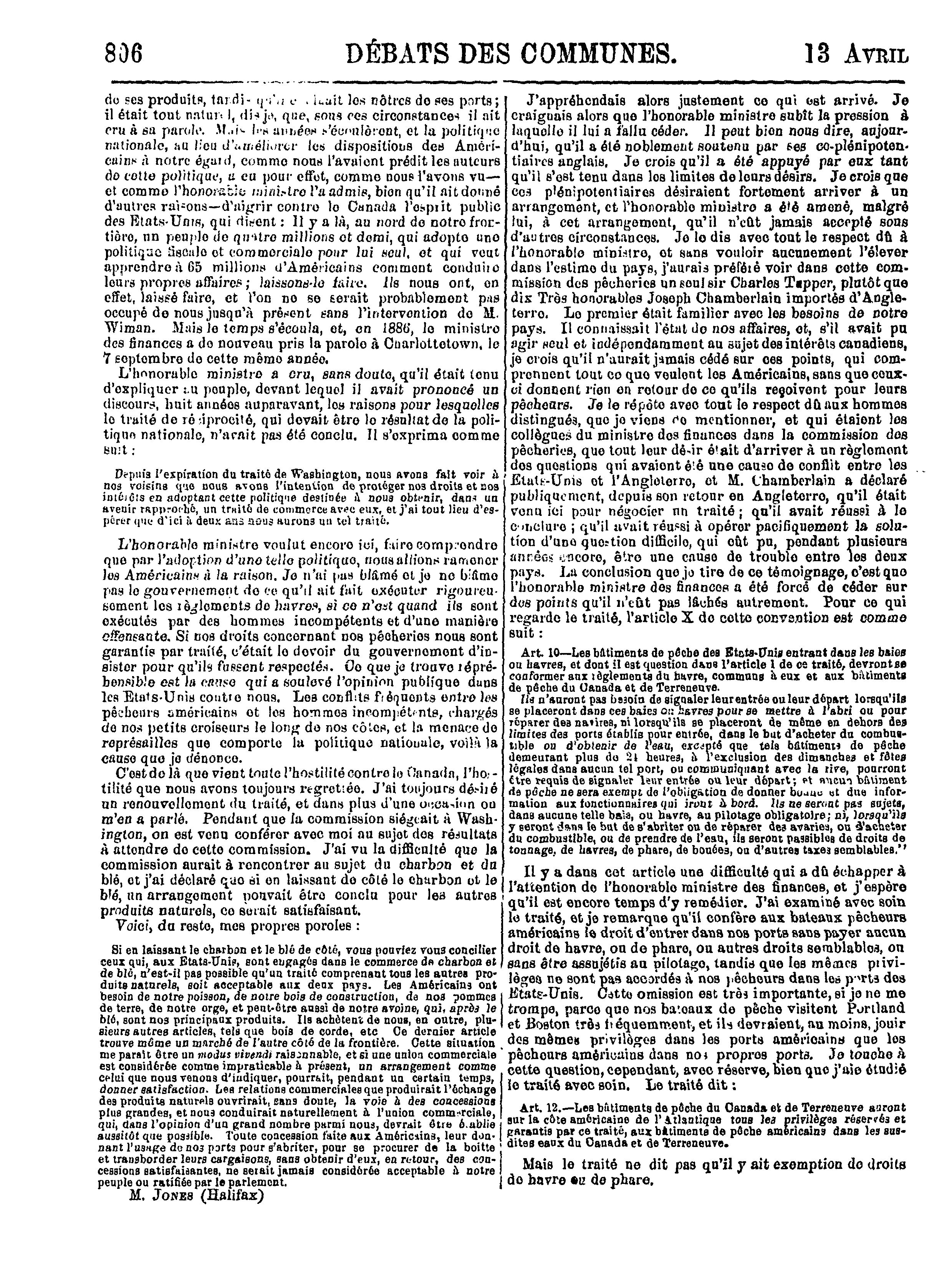 Compte-rendu officiel des débats de la Chambre des communes du Canada : deuxième session, sixième parlement, 51 Victoriae, 1888, vol. XXV, comprenant la période depuis le vingt-troisième jour de février jusqu'au treizième jour d'avril 1888 : 1888 (ptie 1)