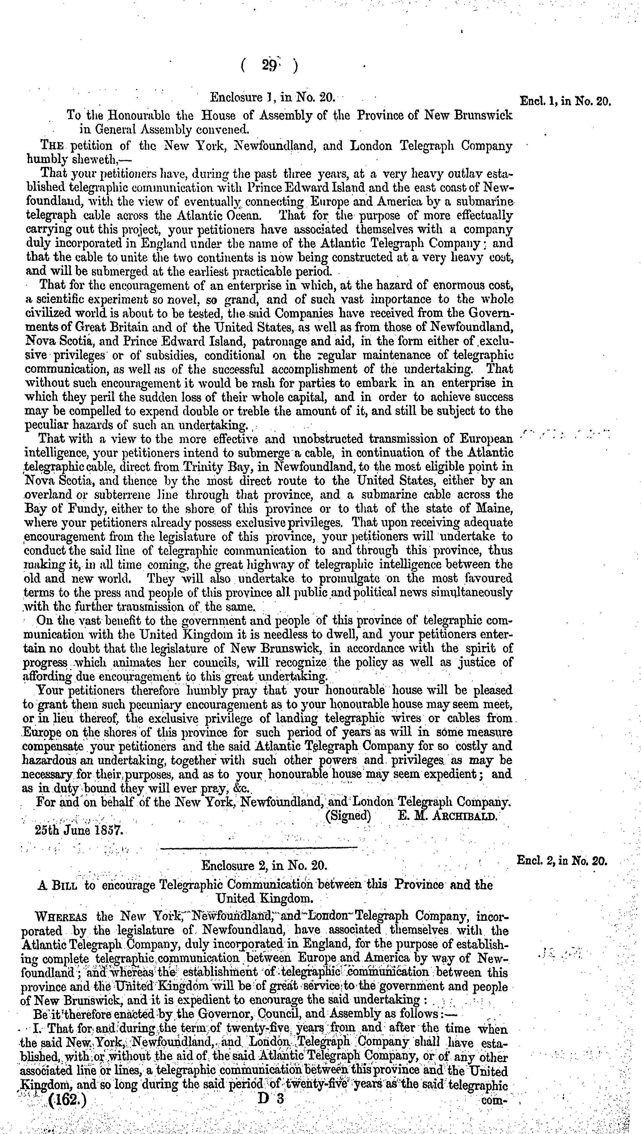 Laws and correspondence concerning the New York, Newfoundland and London Telegraph Company.