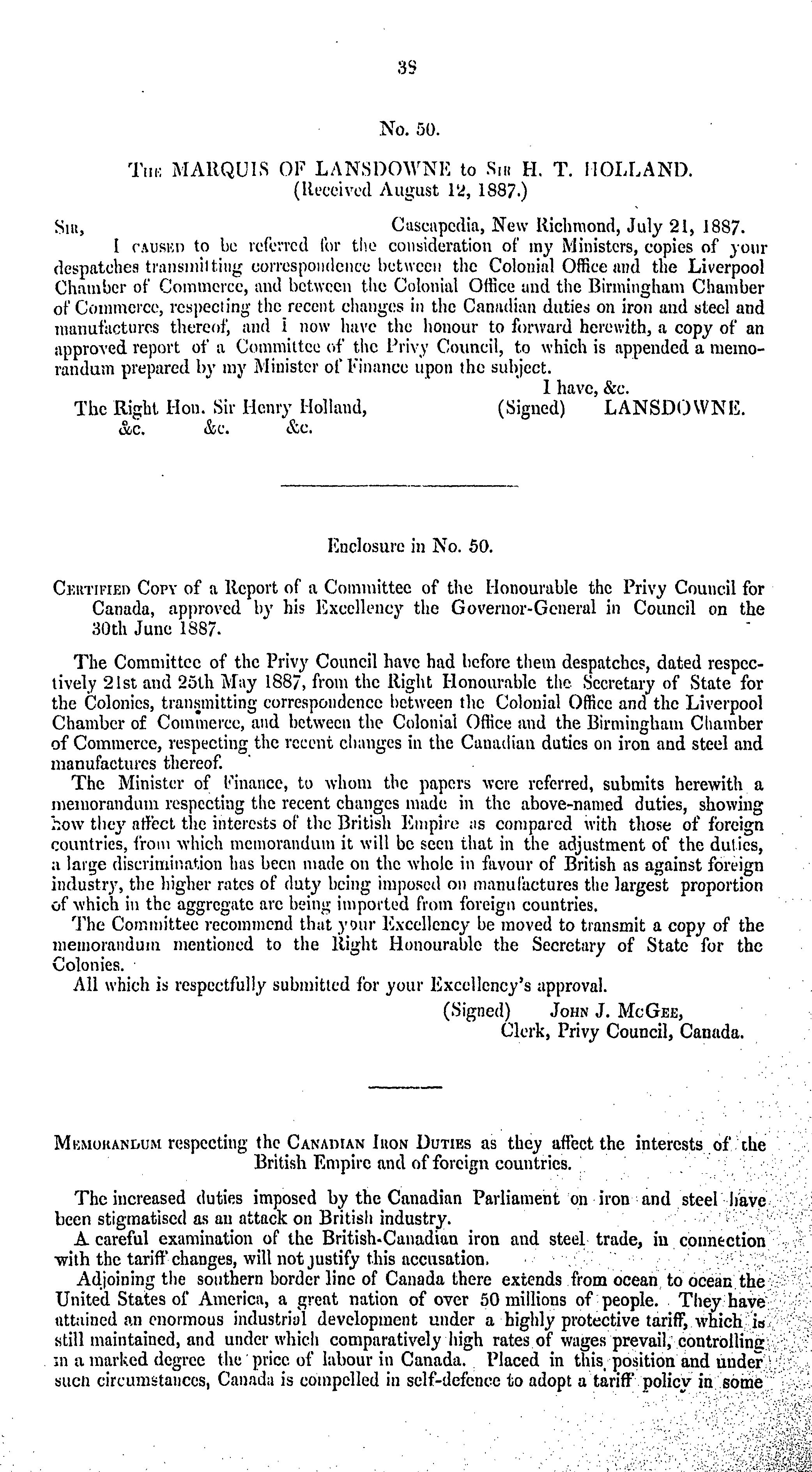 "Presented to both Houses of Parliament by Command of Her Majesty. August 1887."