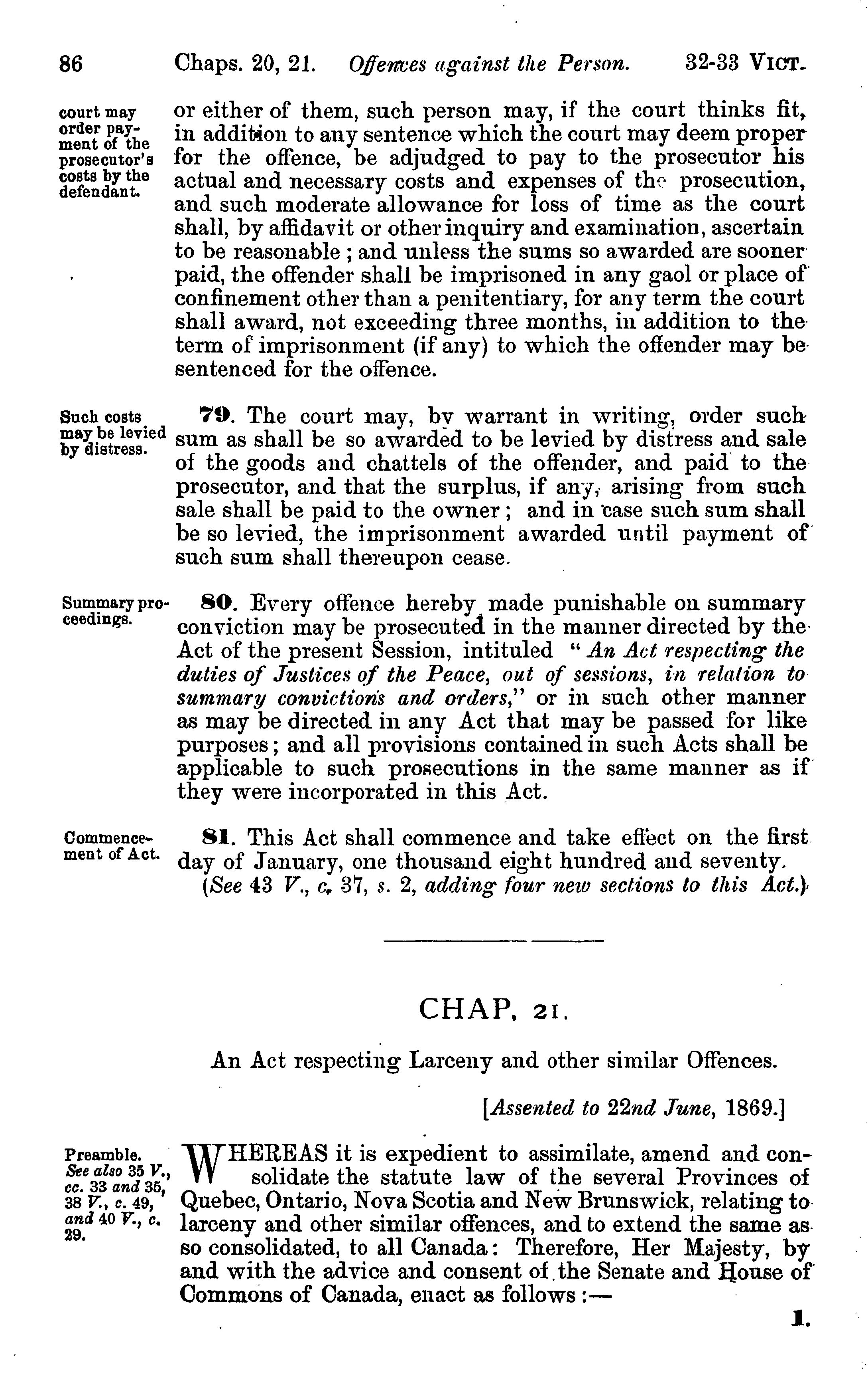 Prefaced by (lxv pages): Acts of the Parliament of the United Kingdom of Great Britain and Ireland, prefixed to the collection of acts of the Parliament of Canada relating to criminal law and to procedure in criminal cases.