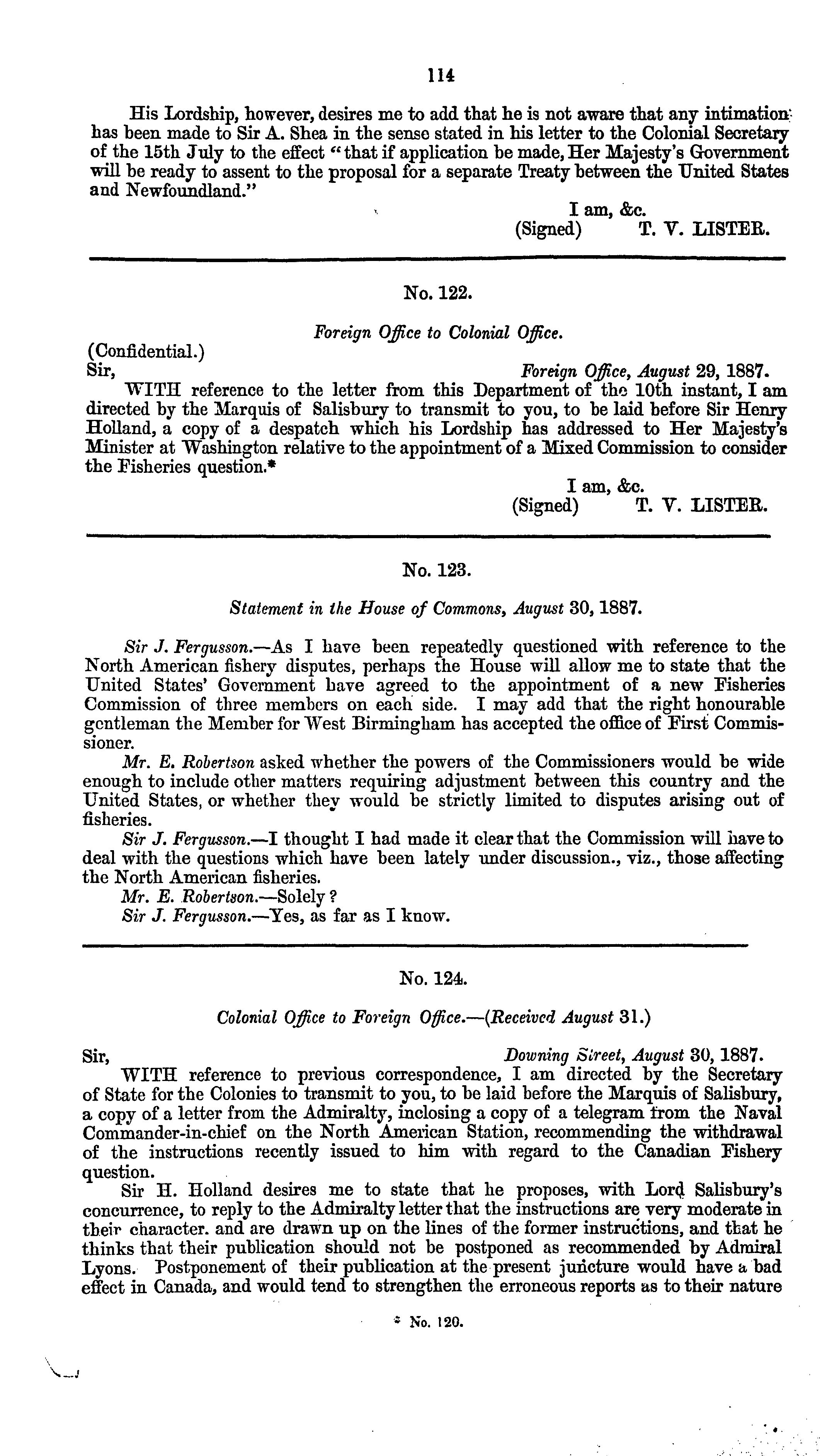 Further correspondence respecting the termination of the fishery articles of the Treaty of Washington of the 8th May, 1871 : April to August 1887. - Adresse bibliographique