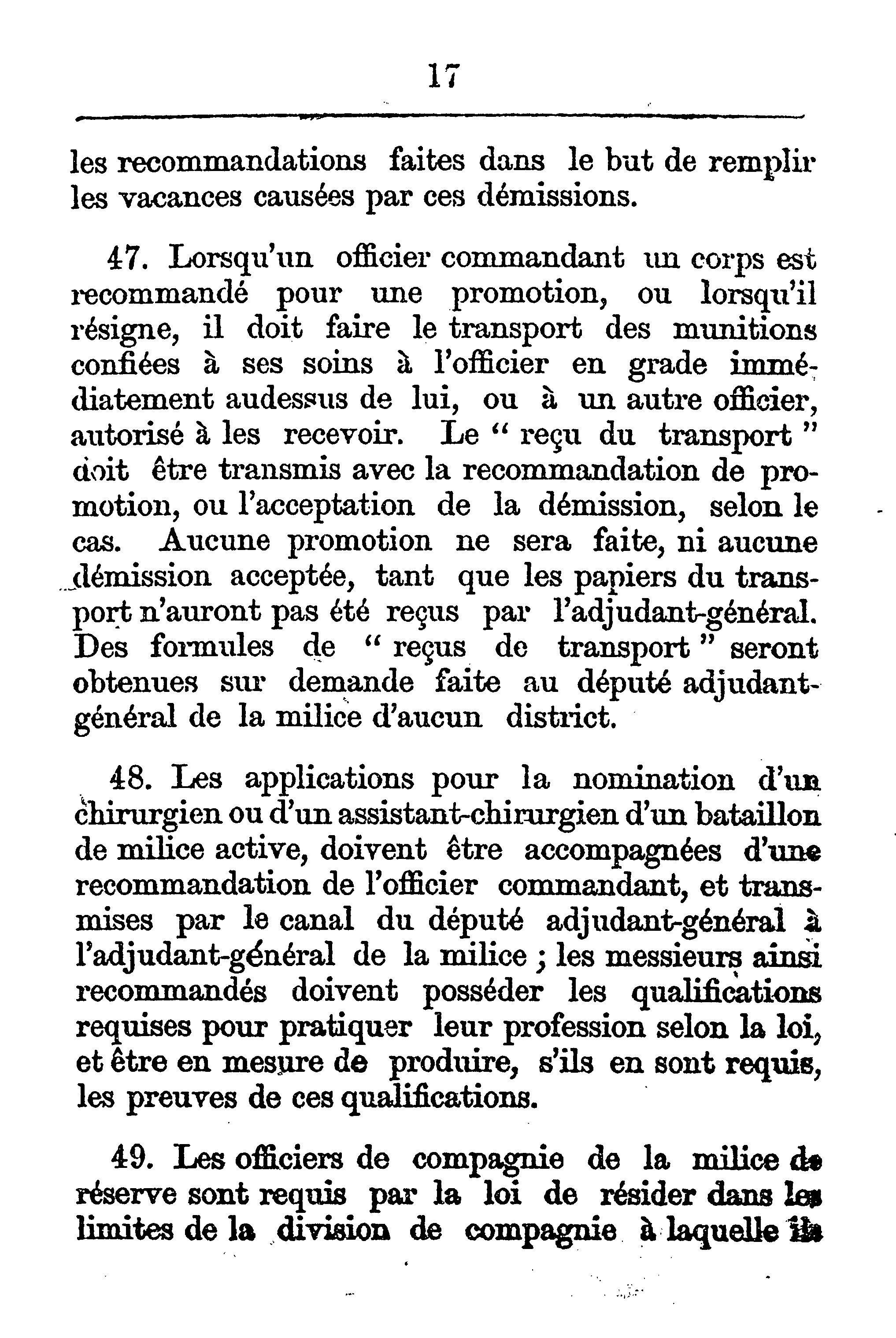 Règlements et ordres pour la milice active les écoles d'instruction militaire et la milice de réserve (dans les cas y mentionnés), de la puissance du Canada : adoptés par le gouverneur en conseil, le 4 mars 1870, et publiés dans la gazette du Canada, le 12 mars 1870.