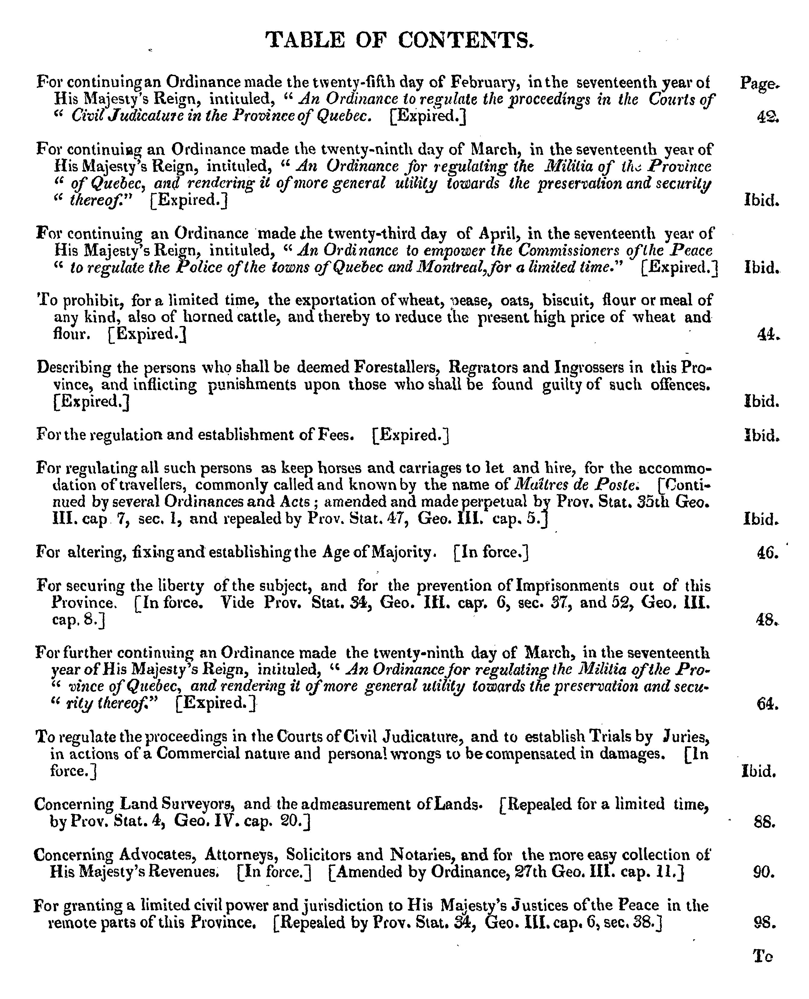 Ordonnances faites et passées par le gouverneur et le conseil législatif de la province de Québec, actuellement en force dans la province du Bas-Canada