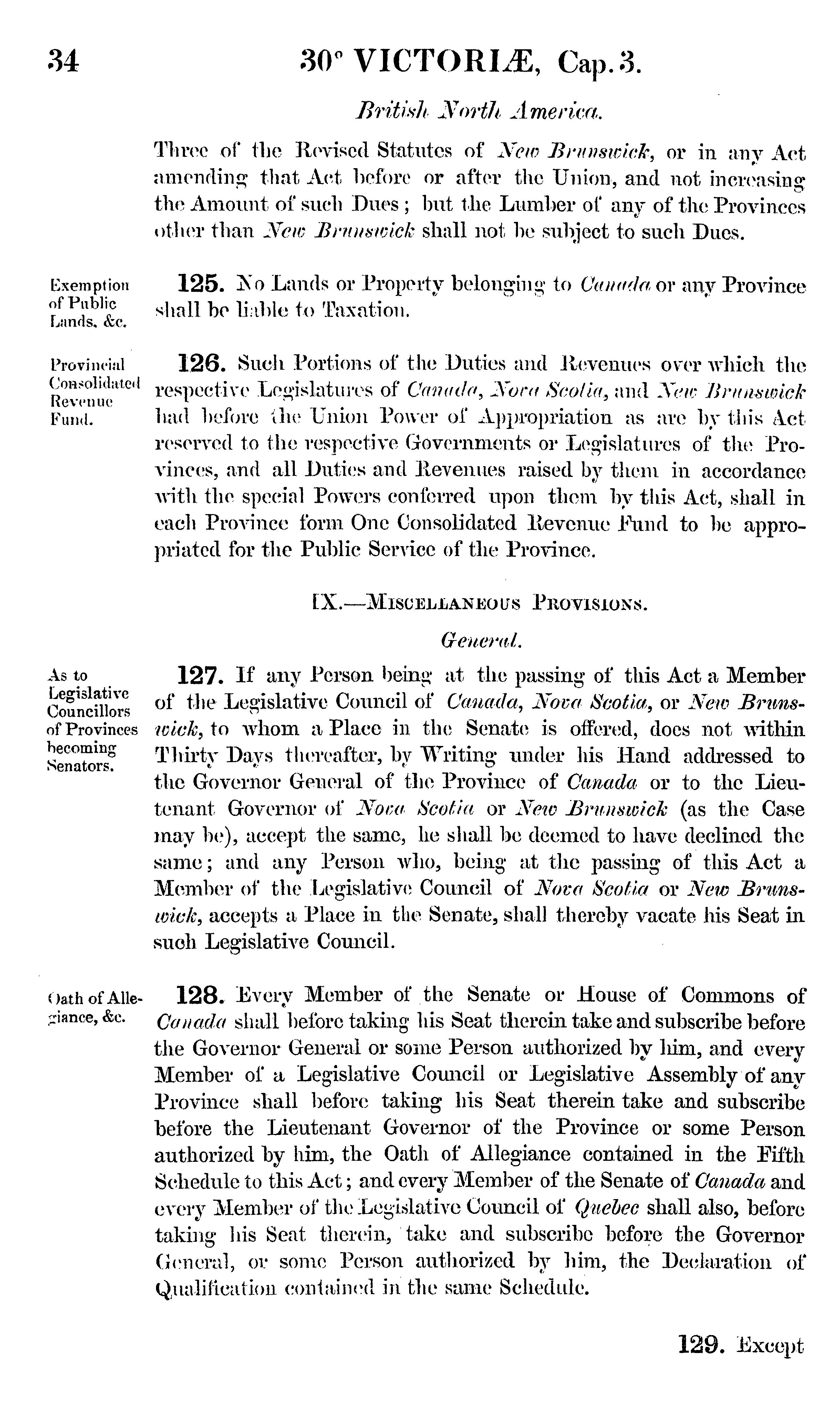 An act for the union of Canada, Nova Scotia, and New Brunswick, and the government thereof, and for purposes connected therewith.