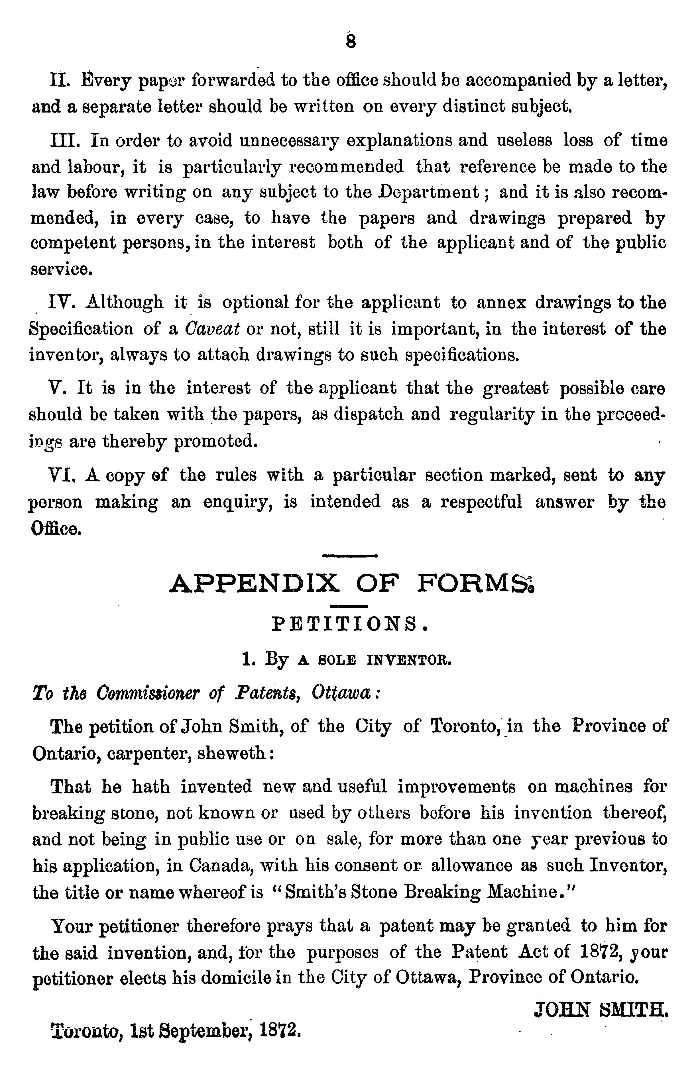 Rules, regulations and forms of the Canada Patent Office, 1st September, 1872.