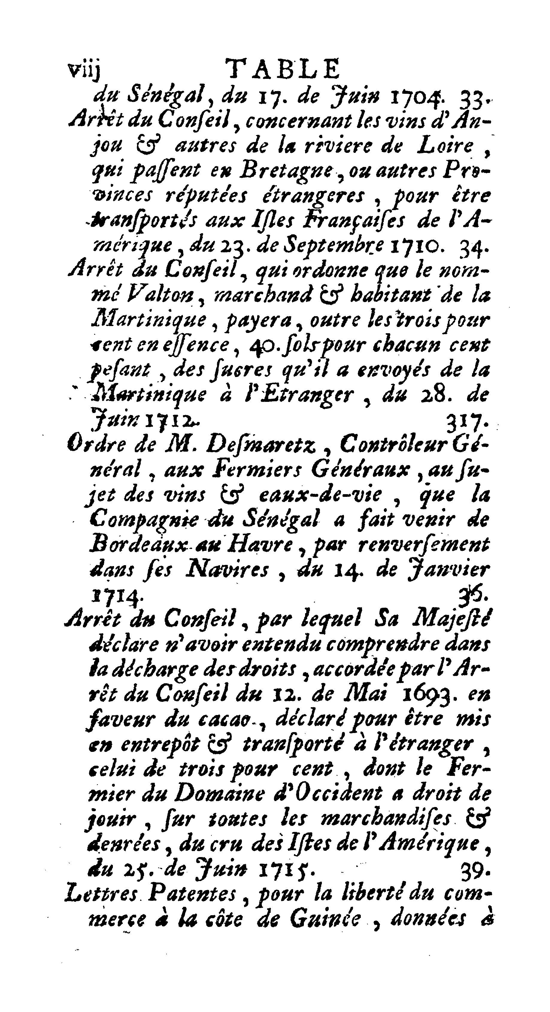 "Table chronologique des reglemens contenus dans le Code Noir & l'Addition": pages [215]-220 (2e ptie.)