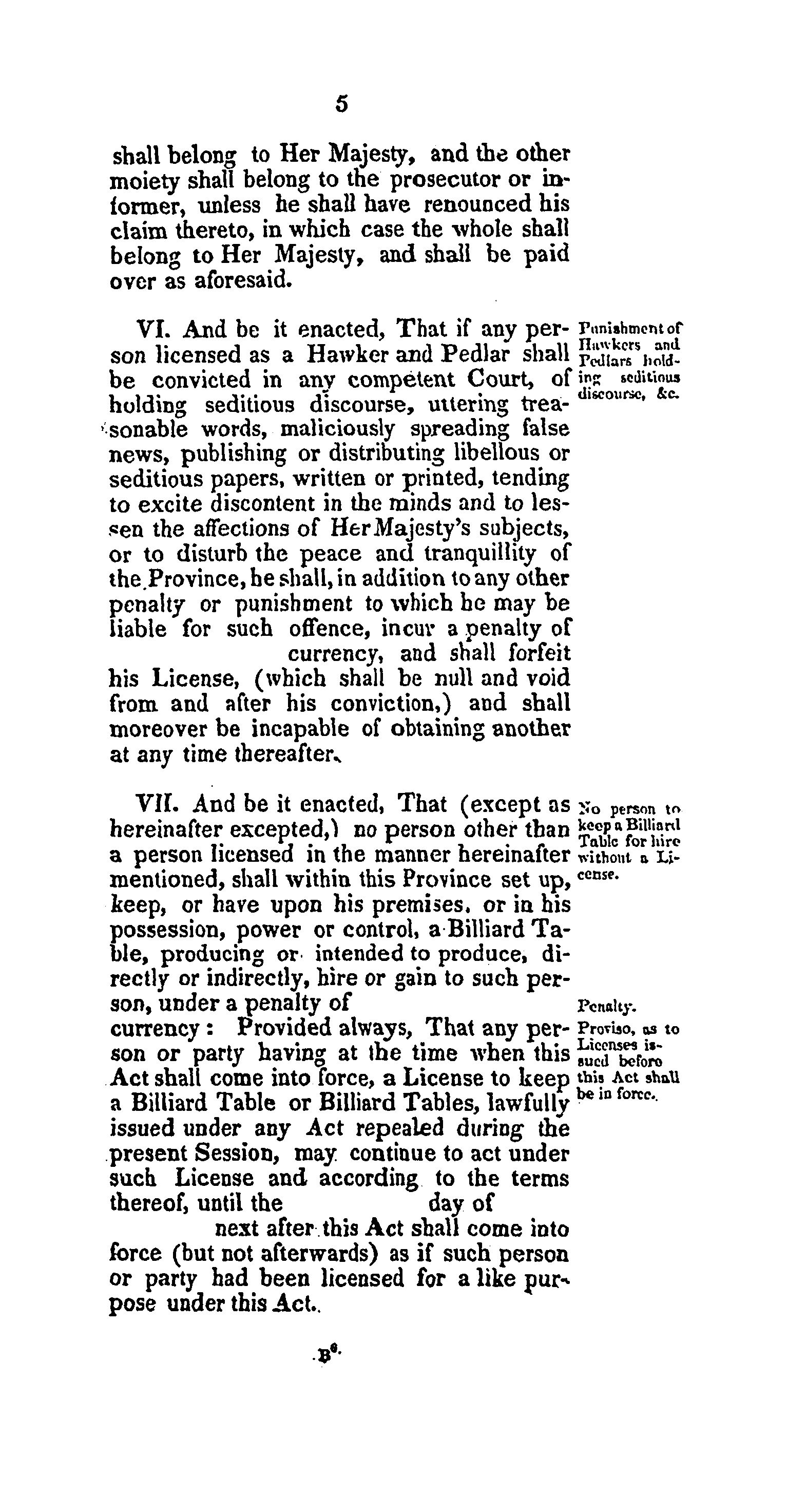 Act to impose duties on hawkers, pedlars and petty chapmen, and on persons keeping billiard tables for profit, and to provide for the collection of the said duties