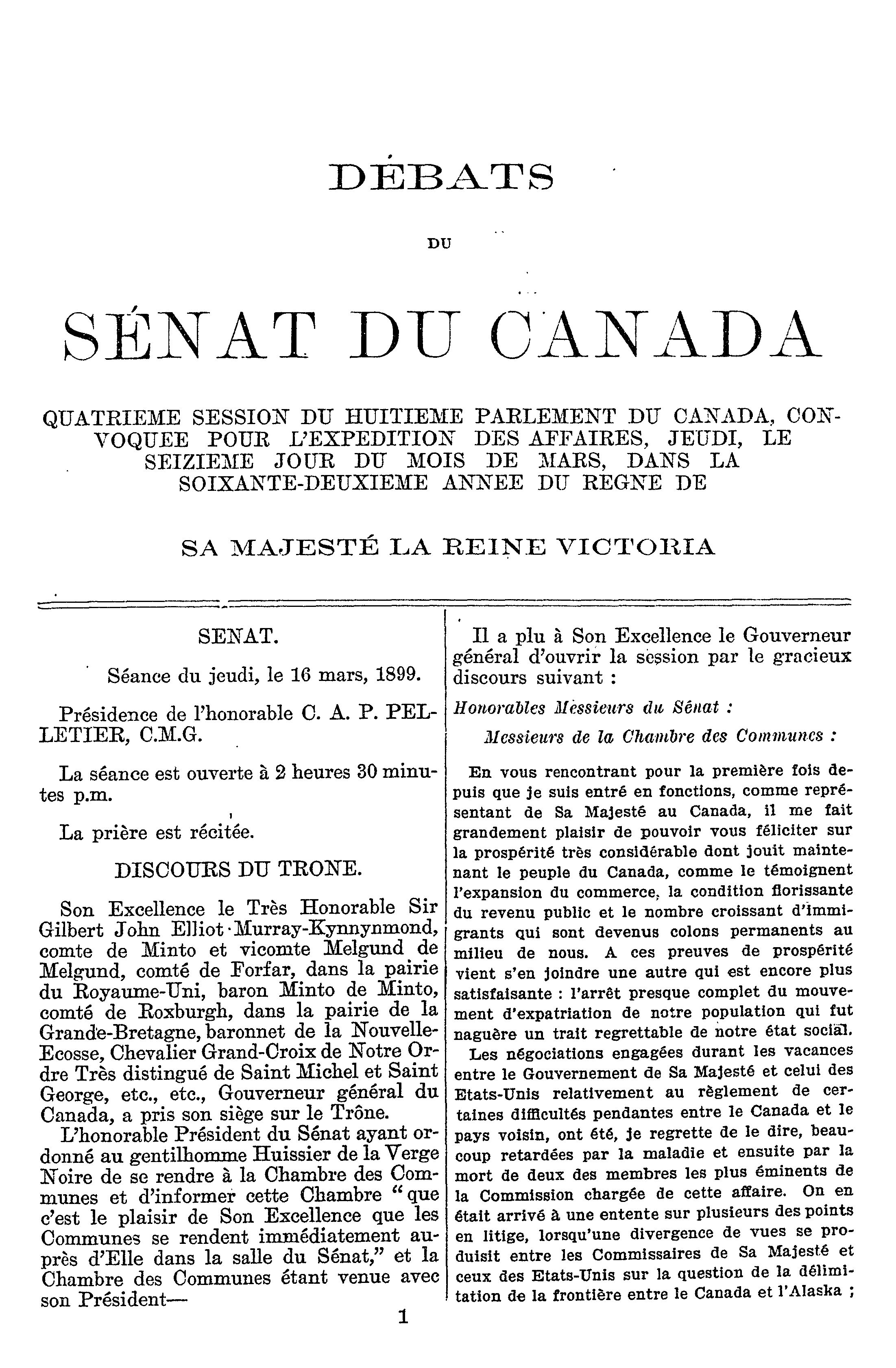 Débats du Sénat du Canada : Débats du Sénat du Canada, 1899 : 1899