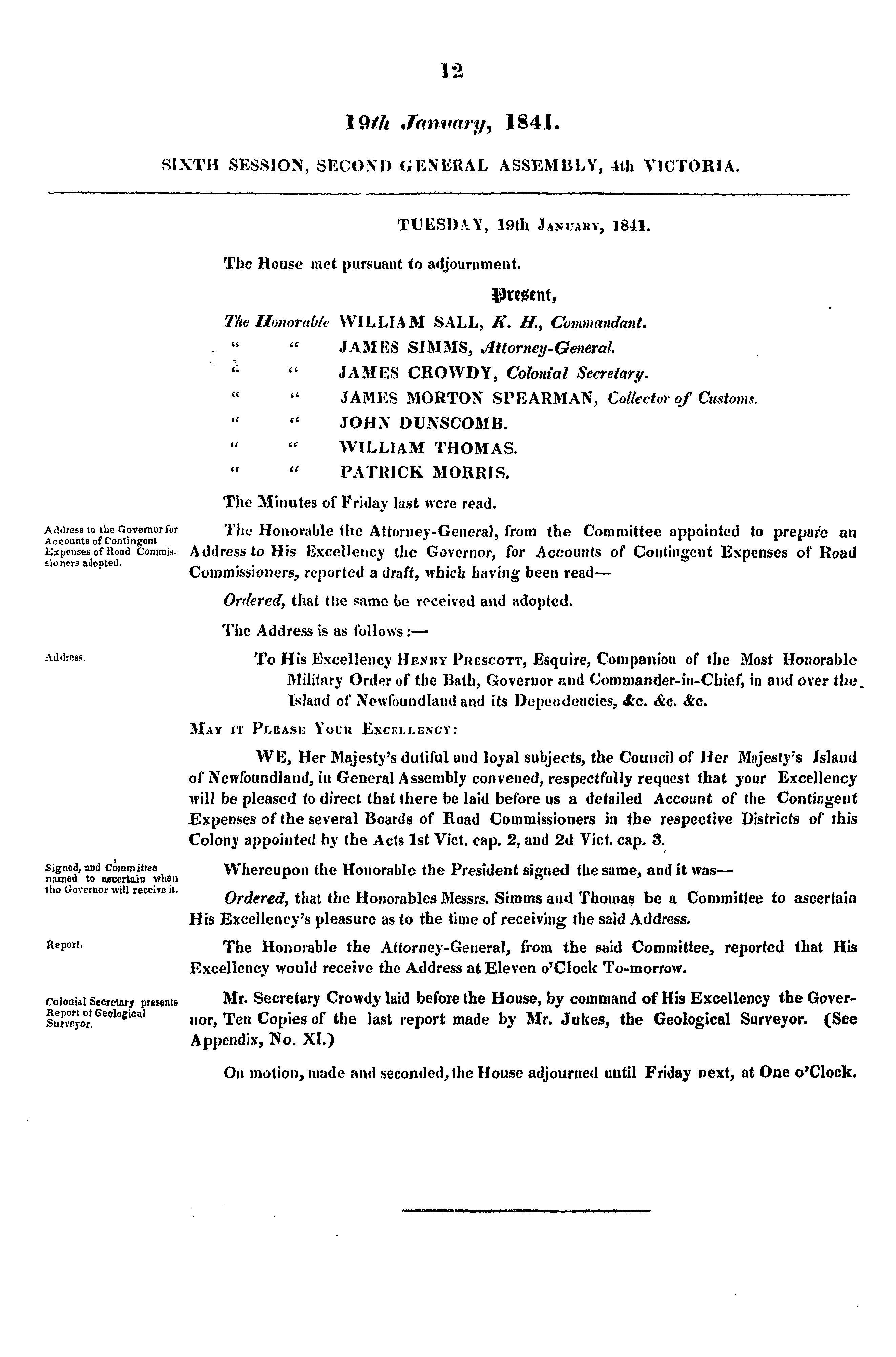 Journal of Her Majesty's Council of Newfoundland : 1841